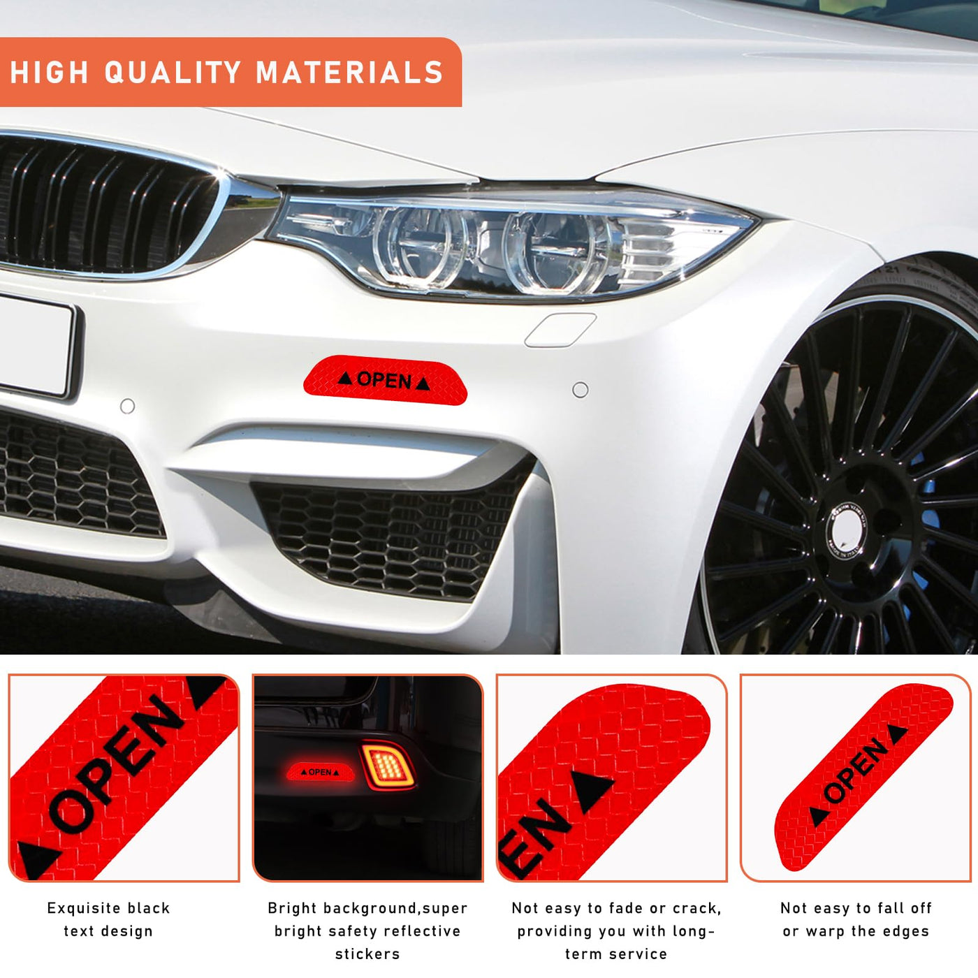 Ziciner 8 Pcs Car Door Open Reflective Stickers, Night Visibility Safety Warning Auto Anti-Collision Protective Strip, Universal
