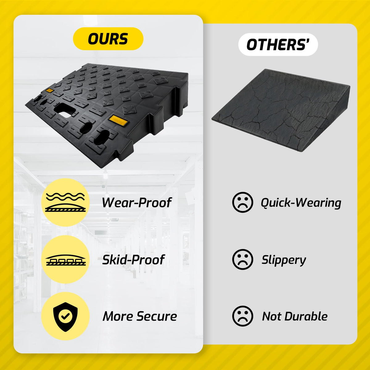 Q: Can I use these ramps for loading docks and garages?A: Absolutely! These heavy-duty ramps are versatile and can be used in loading docks, garages, driveways, and for various vehicles, providing a reliable solution for multiple pathways.