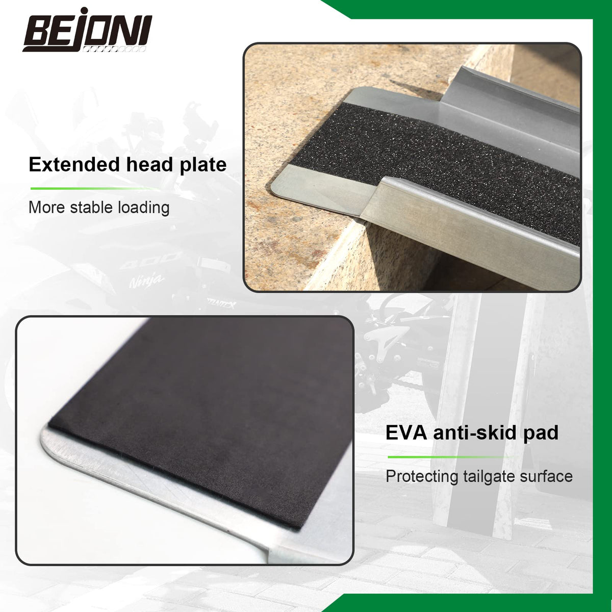 Q: What types of vehicles can I use the BEJONI loading ramps with?A: The BEJONI loading ramps are versatile and can be used with a variety of vehicles, including motorcycles, dirt bikes, lawn mowers, ATVs, golf carts, and garden tractors.