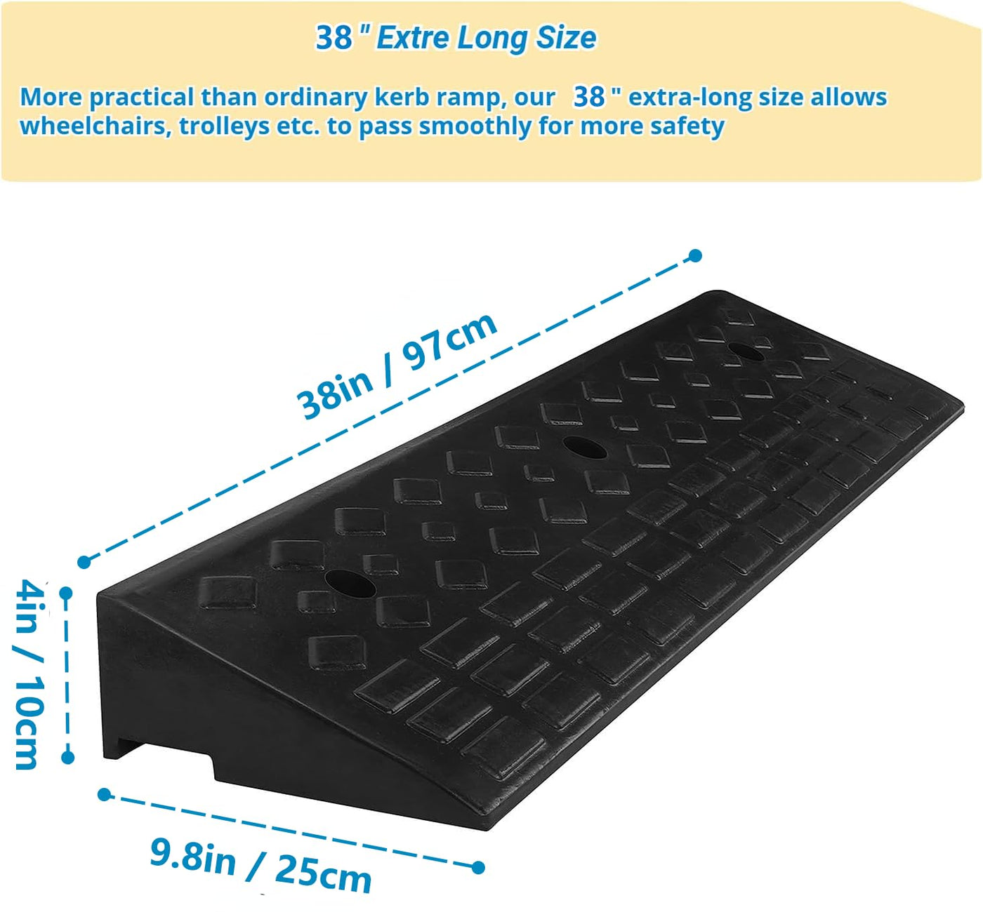 Nisorpa 4'' Rubber Curb Ramps Heavy Duty Driveway Curb Ramp 10 Ton Car Slope Ramp for Sidewalk Cars RV Trucks Shed Entryway Bike