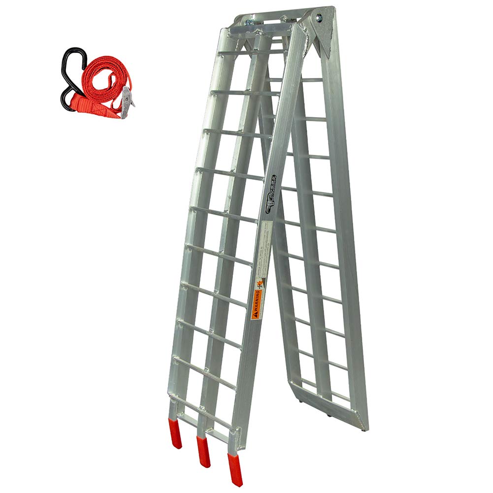 Pit Posse Pp2755 Aluminum Folding Truck Ramp For Motorcycle Loading 7.5Ft (89'') - 750Lbs Rated - Includes Bonus Strap Tie-Down