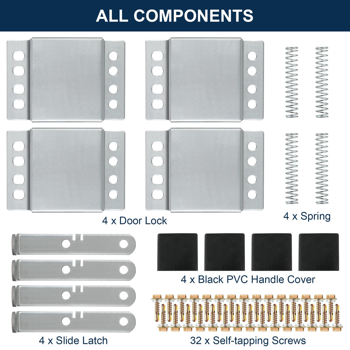 4 Pack Garage Door Side Lock With Self Tapping Screws, Heavy Duty Inside Deadlock Dual Side Lock Part, Galvanized Steel, For Door Security Slide Latch Assembly Replacement, Black Pvc Handle Cover