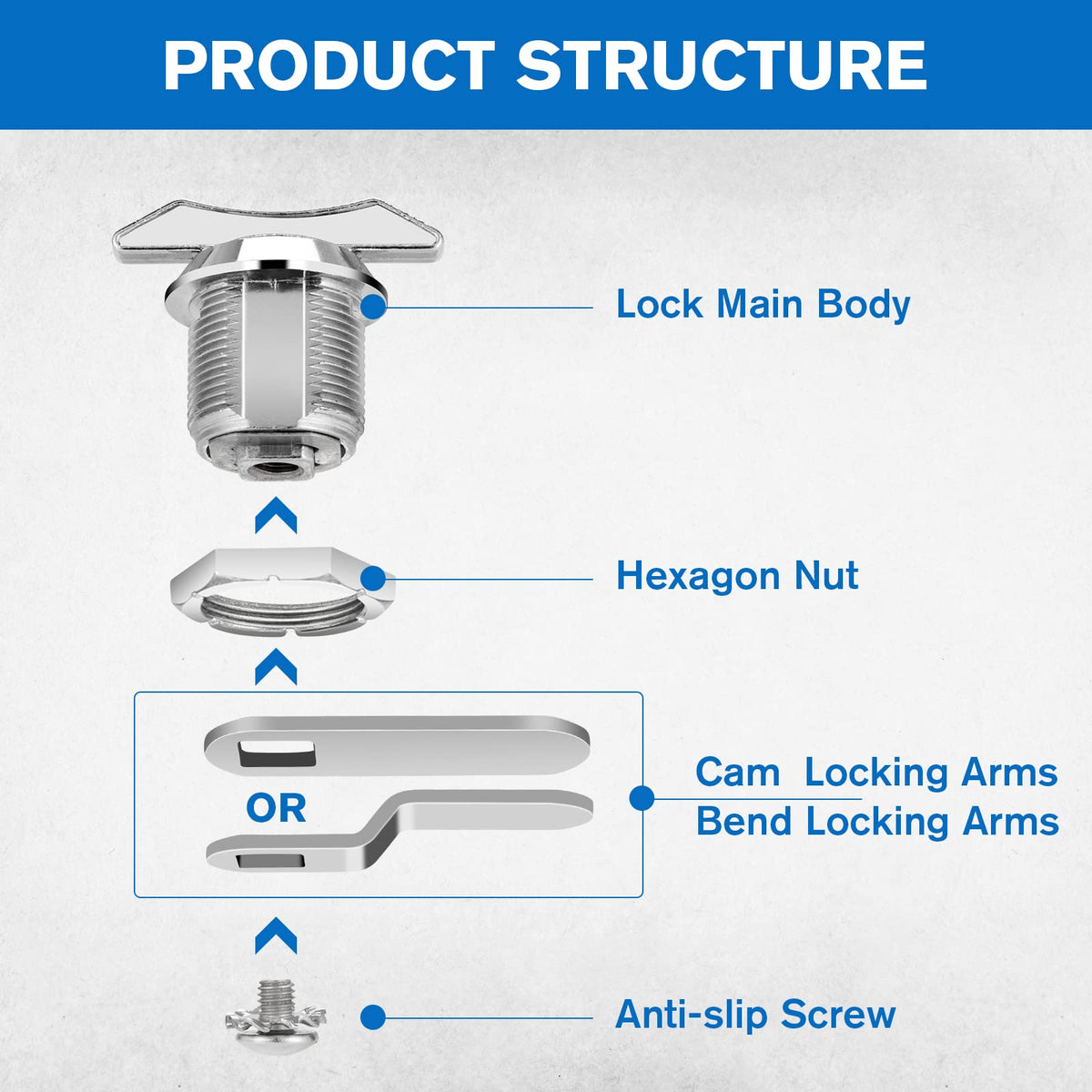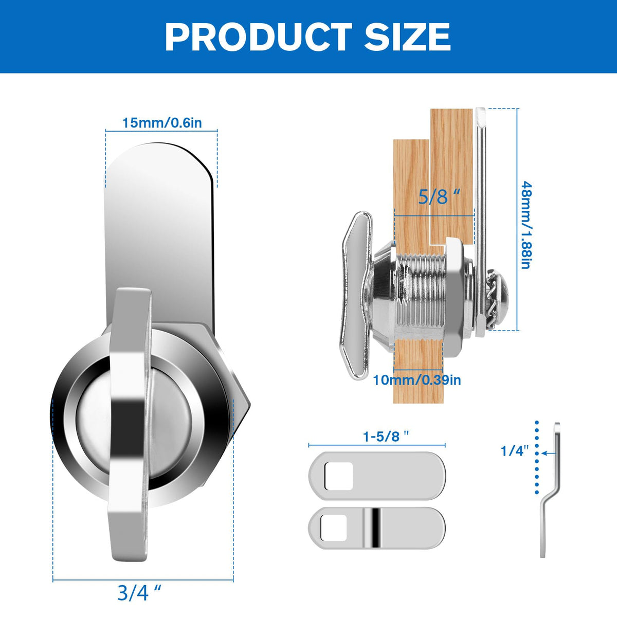 Q: Does the BEBOBLY Cam Lock come with keys?A: The BEBOBLY Cam Lock features a keyless design, allowing for convenient one-hand operation to lock and unlock by simply turning the wing handle.