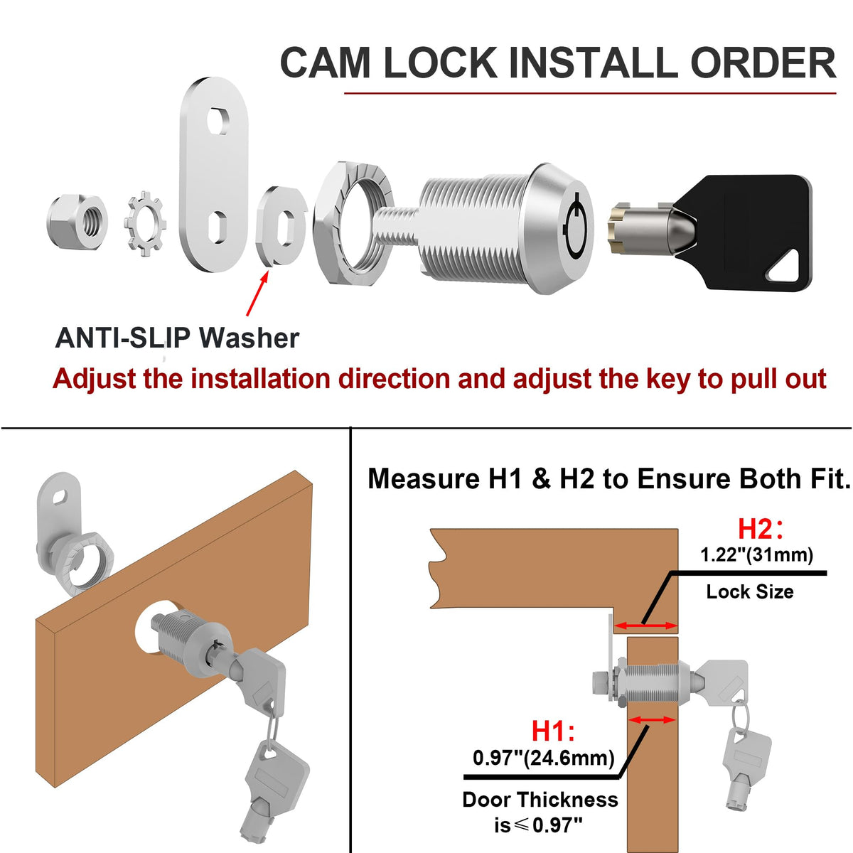 Security Experts Around You Protect Your Rv Doors, Drawers And Cabinets We Provide 1-18 And 58 Tubular Cam Locks The Lock Body Is Made Of High-Quality Zinc Alloy Die-Casting And Chrome-Plated, Which Is Strong And Safe Important Documents In Daily Life Provide Security And Privacy, And Are Used In Rvs, Campers, Desks, Drawers, Cabinets, Tool Boxes, Etc Features: 1 Zinc Alloy Die-Casting, Strong And Durable 2 Easy To Install And Complete Accessories, It Is A Good Choice To Replace The Lock 3 Safe, Reliable And Widely Used What Do You Get: 2 Pack 1-18 Cam Locks Sets And 4 Keys, Ordering Multiple Sets Of Cam Locks Will Use The Same Keys 100% Satisfaction Guranteed: If You Are Not Completely Satisfied With The Product, We Provide A Full Money Back Guarantee Bozxye Cabinet Locks With Keys Can Ensure Your Safety And Privacy If You Need More Support, Please Feel Free To Contact Us