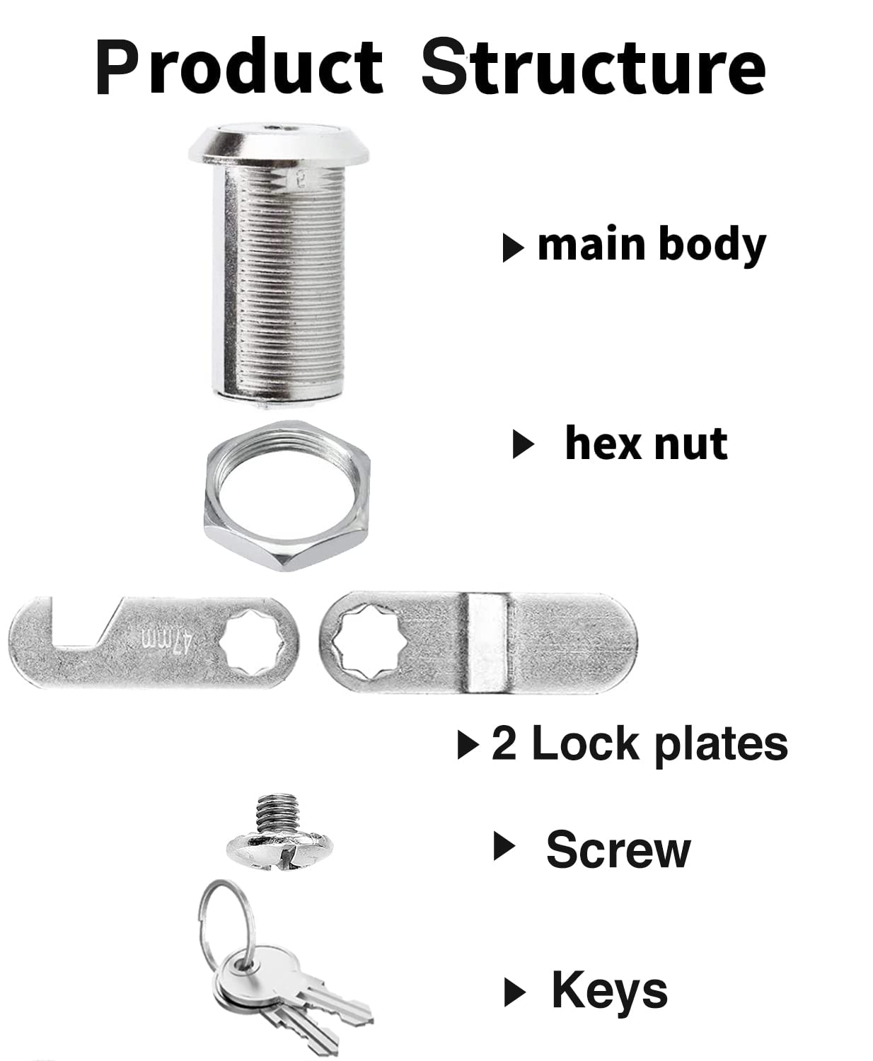 Sartatue Keyed Alike Cabinet Cam Locks Characteristics 1.Made of zinc alloy, resisting corrosion and wear for long-term use 2.Easy installation: Please check the sizes to ensure you choose the right cam lock 3.Wide application: can be mounted to metal or wood, door and drawer panels, etc 4.Each lock is equipped with 2 lock plates and 2 keys
