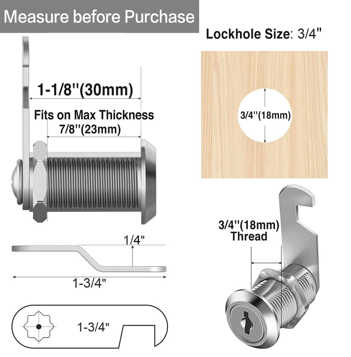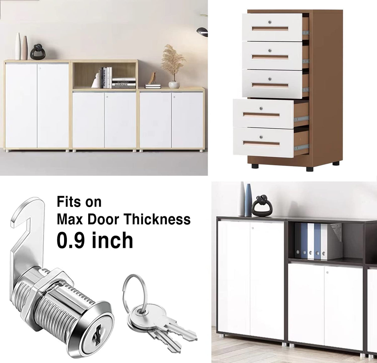Cabinet Cam Locks Keyed Alike, 1-1/8'' Fits On 7/8'' Max Door Thickness, Secure File Drawer Mailbox Rv Storage Replacement Set, Zinc Alloy (1-1/8 Inch 2Pcs)