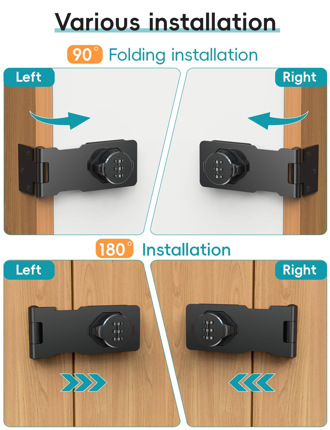 Q: Is this cabinet lock suitable for outdoor use?A: Absolutely! The I-EASYDWW cabinet password hasp lock is made from solid zinc alloy and has a corrosion-resistant coating, making it durable enough for various outdoor applications, including garden storage and garage doors.