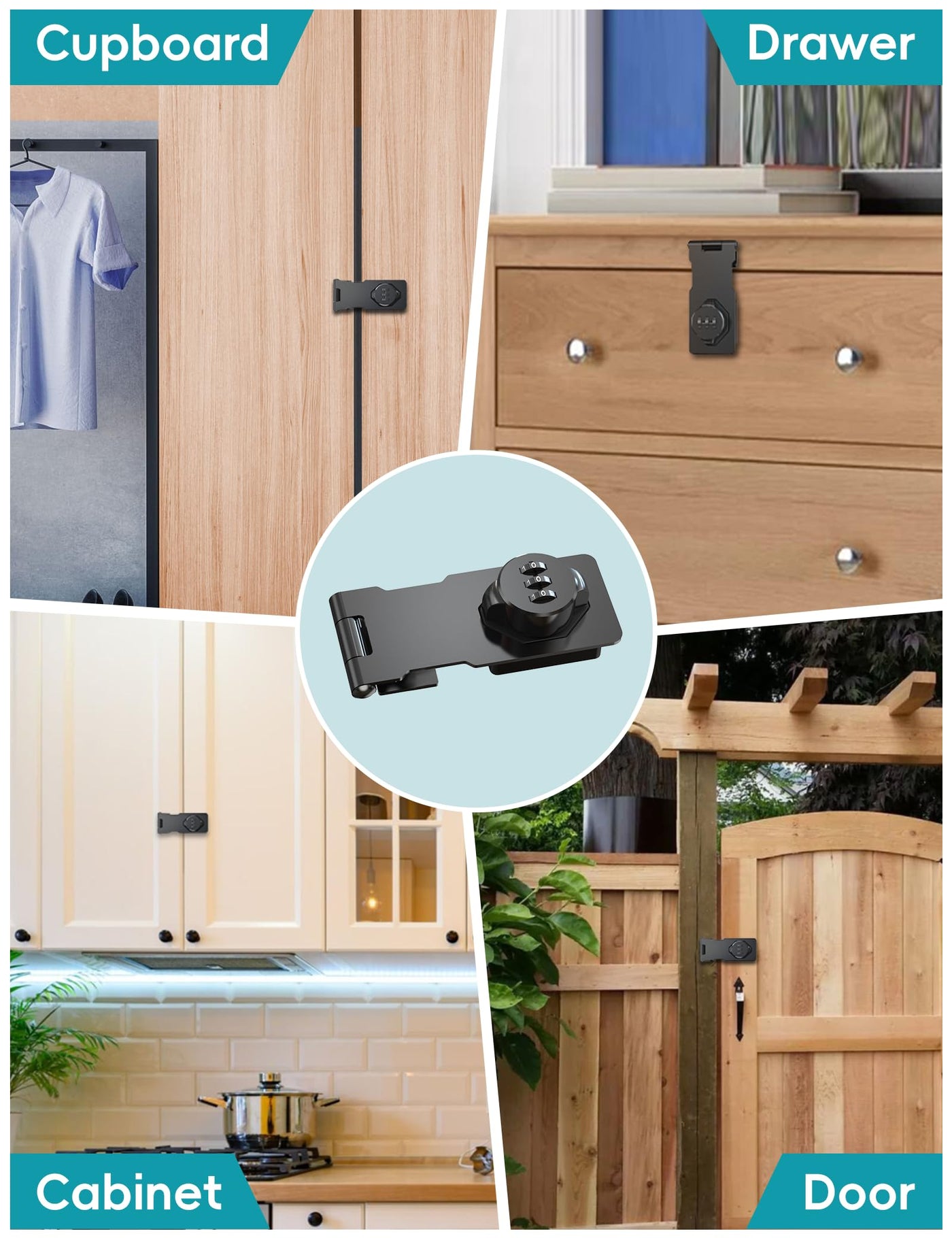 I-Easydww Cabinet Password Hasp Lock, Cabinet Keyless Lock With Screws, Cabinet Combination Lock For Small Door, Cabinets, Barn Door, Bathroom, Outdoor, Garage, Garden, Black, 2 Pack