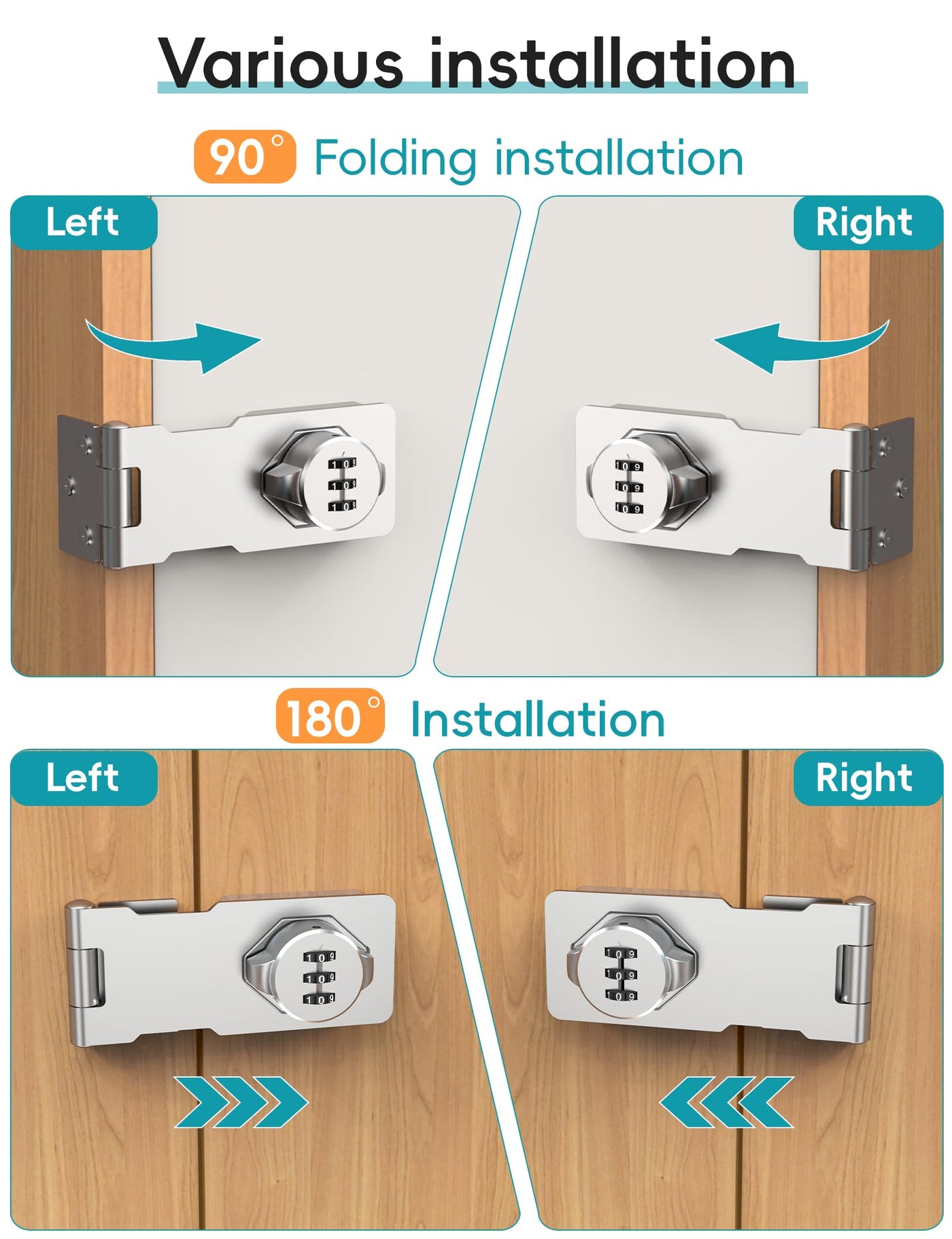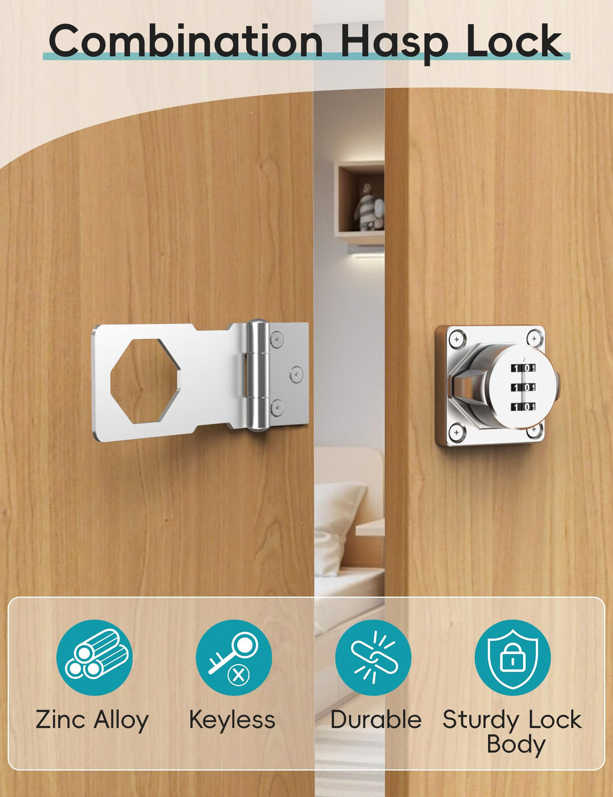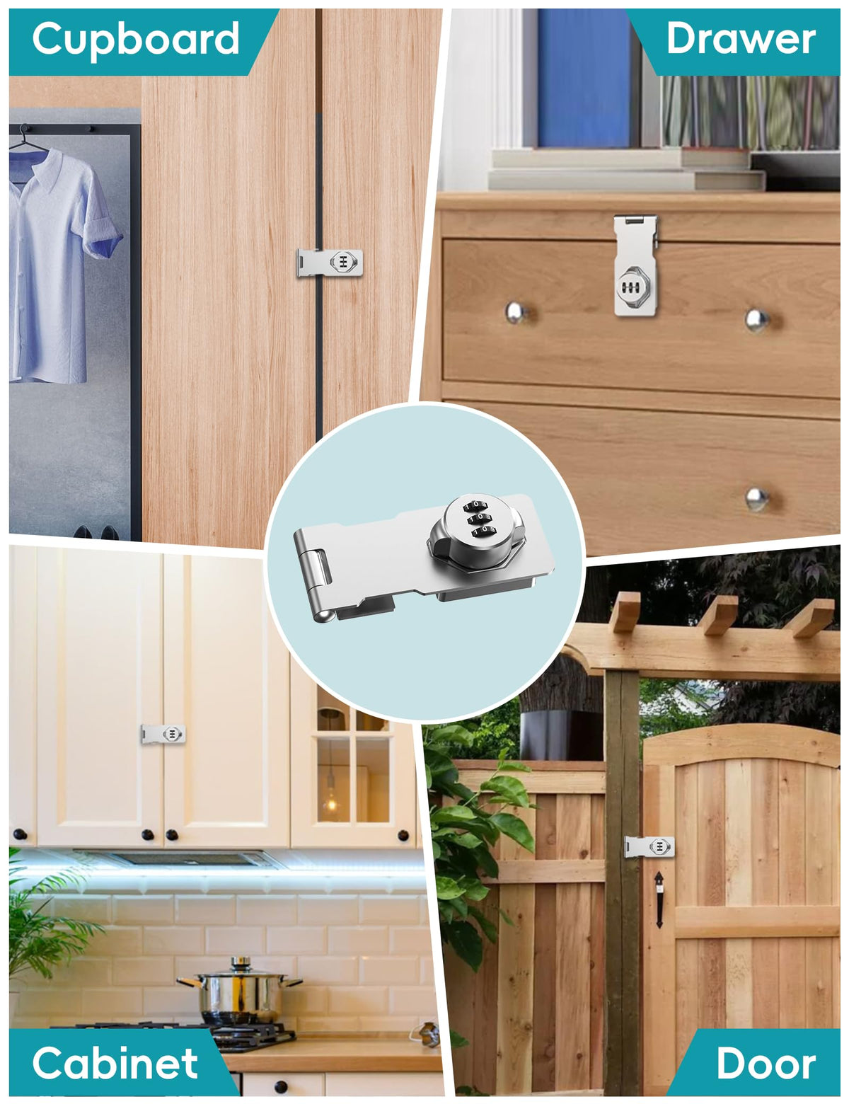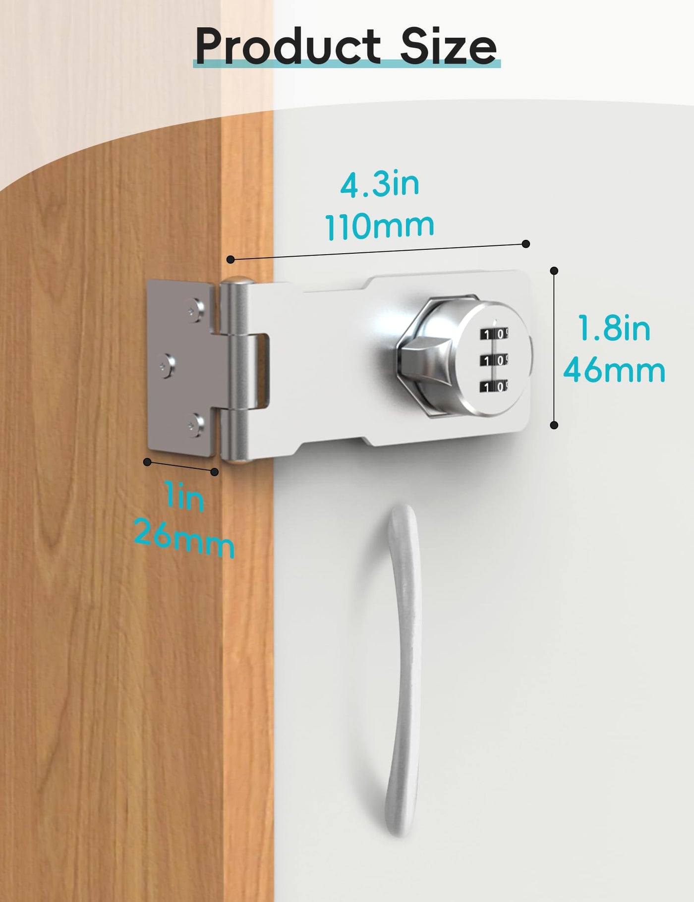 I-Easydww Cabinet Password Hasp Lock, Cabinet Keyless Lock With Screws, Cabinet Combination Lock For Small Door, Cabinets, Barn Door, Bathroom, Outdoor, Garage, Garden, Silver, 2 Pack
