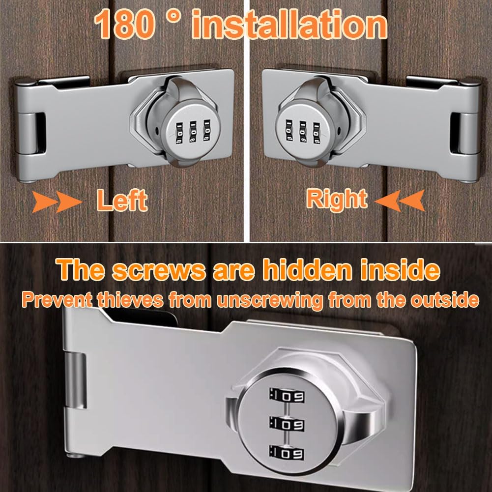Plowatxi offers you a brand new solution - A keyless cabinet lock! Thickened Materials cabinet locks with combination The closet door lock is made of thickened solid zinc alloy and covered with multiple layers of coating, which can effectively provide excellent corrosion resistance and reliability. Security and Anti-Theft lock for cabinet The cabinet combination lock and reinforced zinc alloy material ensures higher security and anti-theft function. Easy installation cabinet locks for adults Just prepare a screwdriver and drilling tool to easily secure it to a door or other item. Compared to adhesive based installation methods, this method is more sturdy and reliable. Universal in all directions double door cabinet lock Our closet lock can be easily installed on doors or covers, whether it is on the left or right side. Multipurpose pantry door lock pantry lock Perfect for cabinets, drawers, closets, storage boxes, lockers, safes, cupboards, vaults, pet doors, sheds, garages, and more. cabinet combination lock size: 4.33*1.8INCH keyless cabinet lock: Black cabinet locks with combination Pack:1 or 2 bifold closet door lock Note: 1. The bi fold door lock initial password is 000. 2. If you want to set a new password, please follow the following steps: turn the old password, turn the knob to the unlock position, press the reset hole with the pin, turn the new password, and release the pin from the hole. Plowatxi lock for cabinet doors aims to provide you with a convenient and secure user experience. Whether it's protecting valuable items or preventing children from accidentally opening drawers, our closet locks for double doors can provide you with peace of mind.