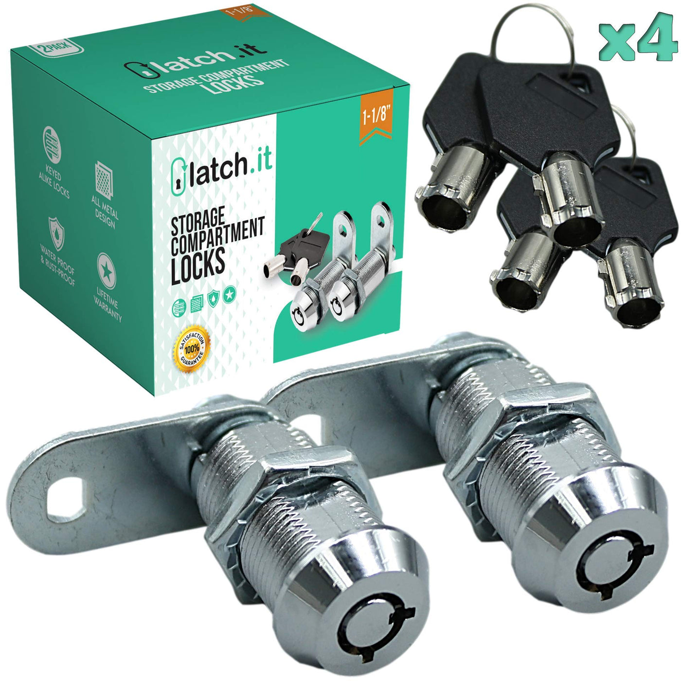 Latch.It 1-1/8” Rv Storage Locks | 2-Pack Rv Compartment Locks | Utility Cam Lock | 100% Metal Rv Locks For Storage Door On Camper Or Trailer | Complete Rv Cam Locks With 4 Keys From Rv Lock Experts!