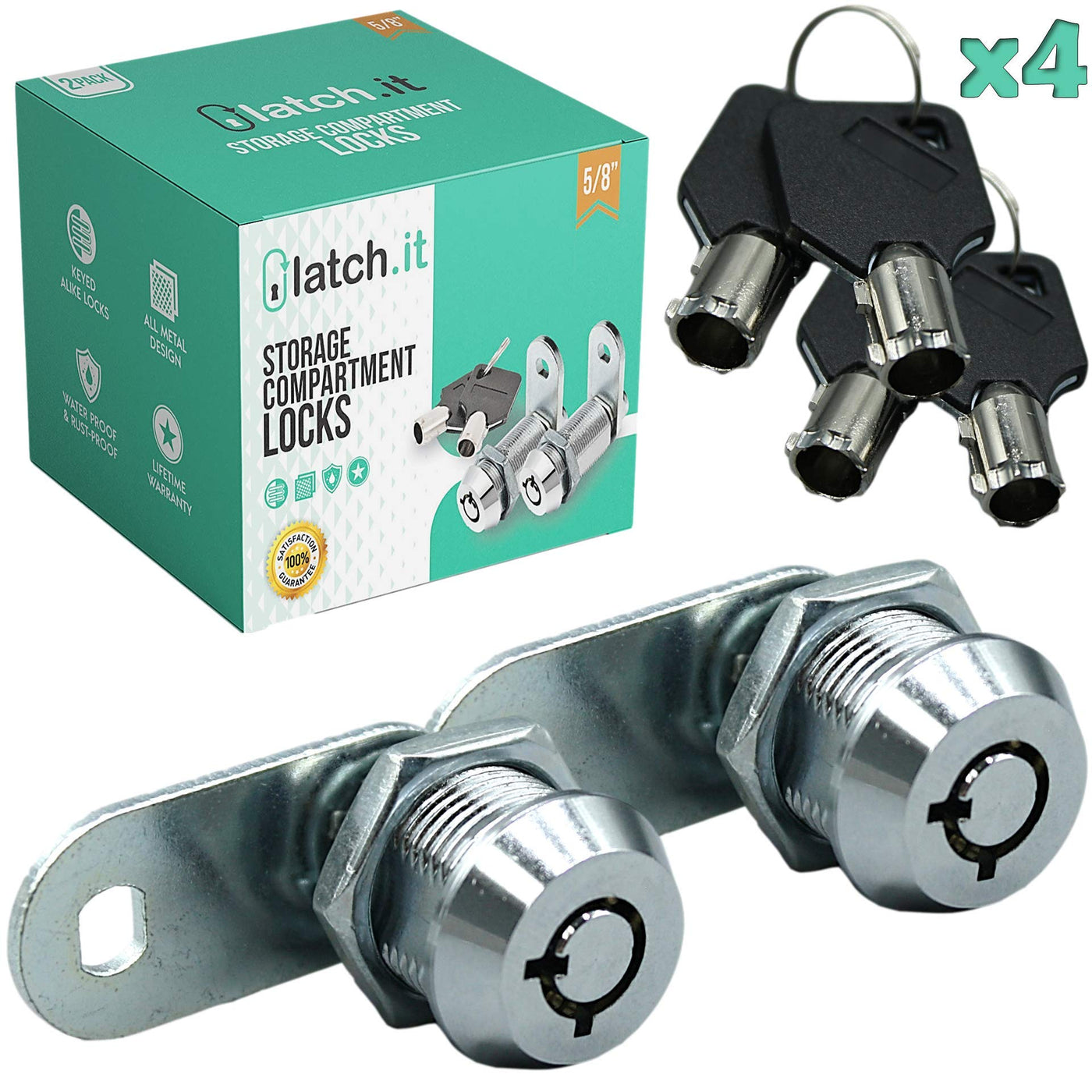 Latch.It 5/8” Rv Storage Locks | 2-Pack Rv Compartment Locks | Utility Cam Lock | 100% Metal Rv Locks For Storage Door On Camper Or Trailer| Complete Rv Cam Locks With 4 Keys From Rv Lock Experts!