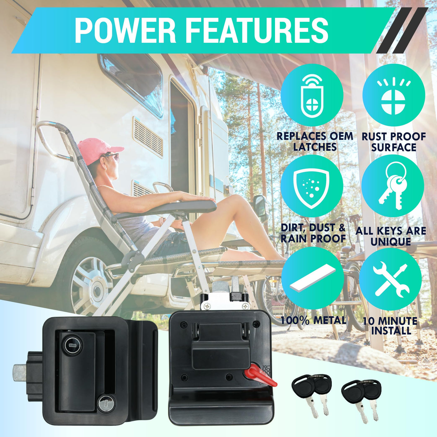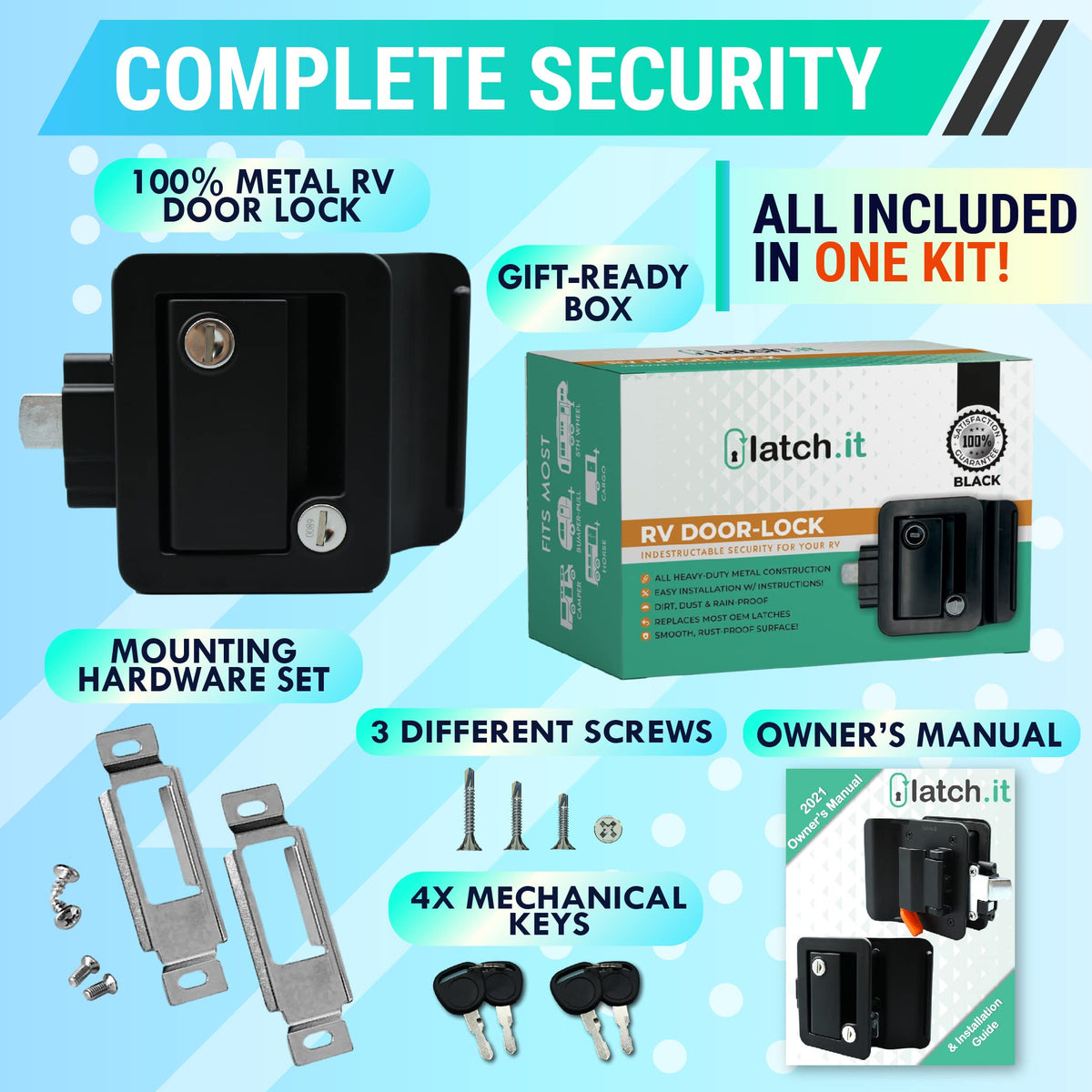 LATCH.IT Black RV Door Latch | 2 Keyed Alike RV Door Locks for Travel Trailers | Travel Trailer Door Latch | 100% Metal Camper D