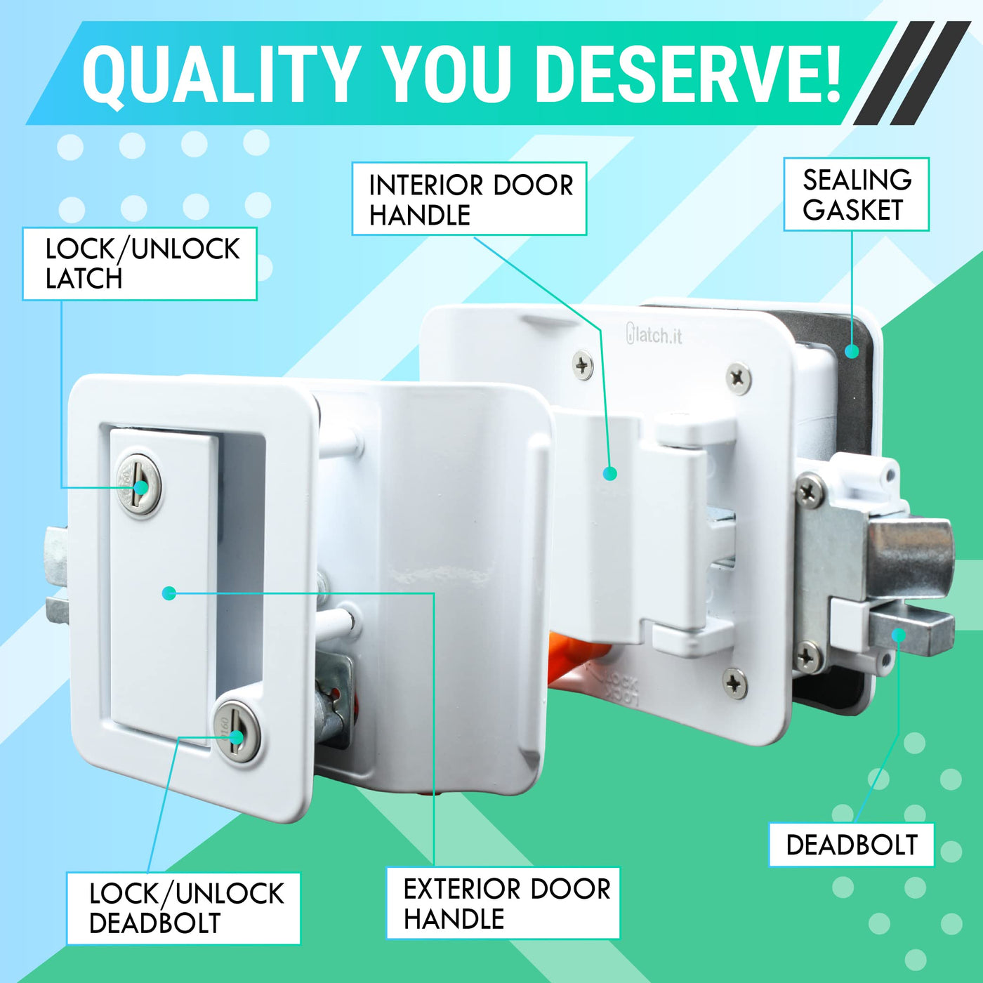 Latch.It White Rv Door Latch | Rv Door Locks For Travel Trailers | 100% Metal Camper Door Lock W/ 4 Keys | Only Fits 2.75''X3.75