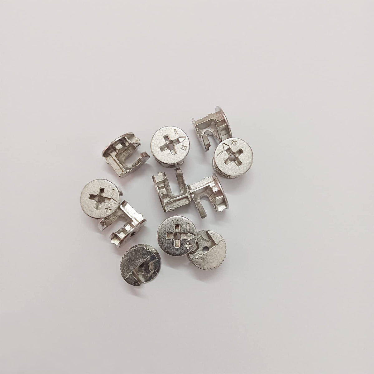 Q: What furniture types are compatible with these cam lock fittings?A: These cam lock fittings are suitable for various types of furniture, including office furniture, cabinets, drawer dressers, wardrobes, lockers, and furniture panels.