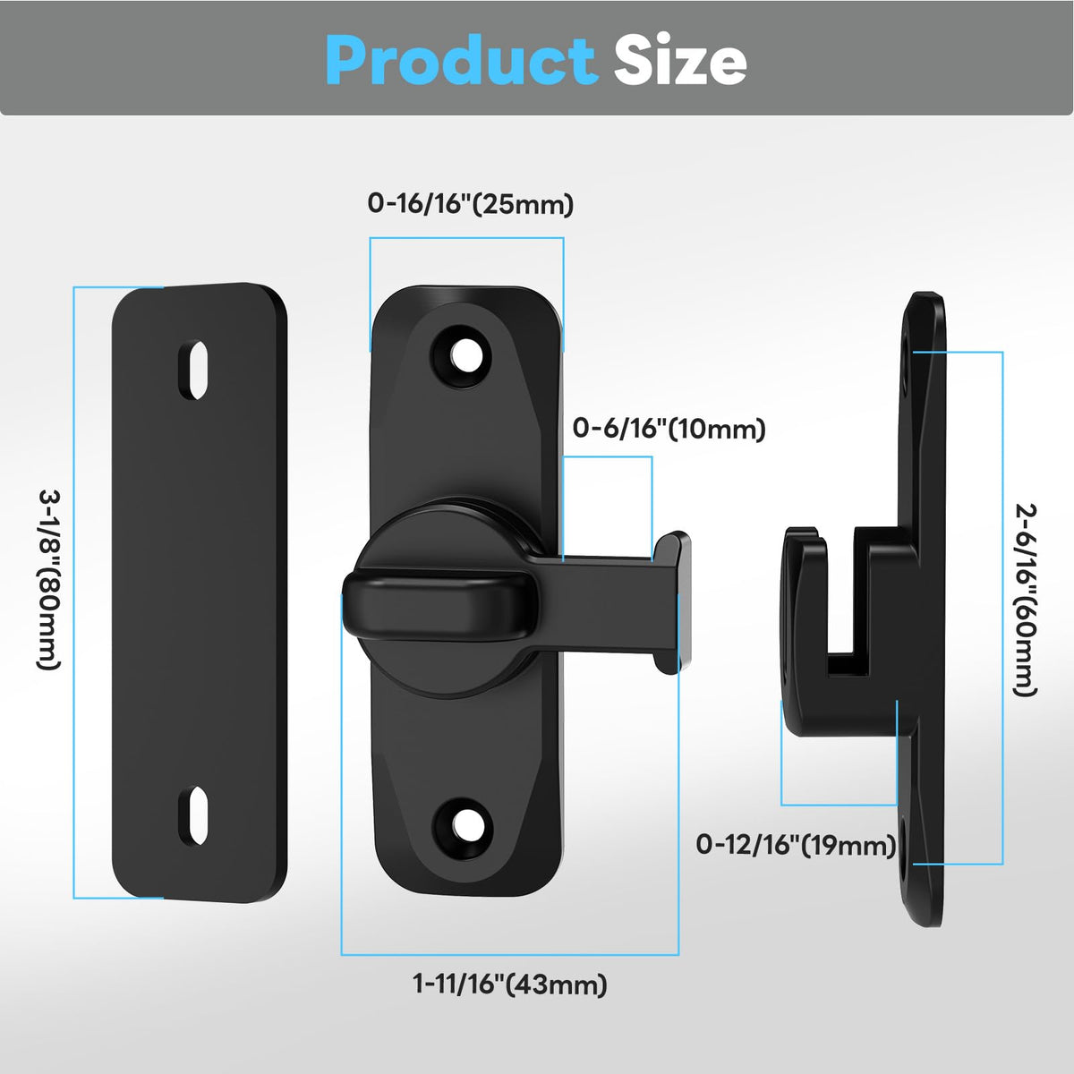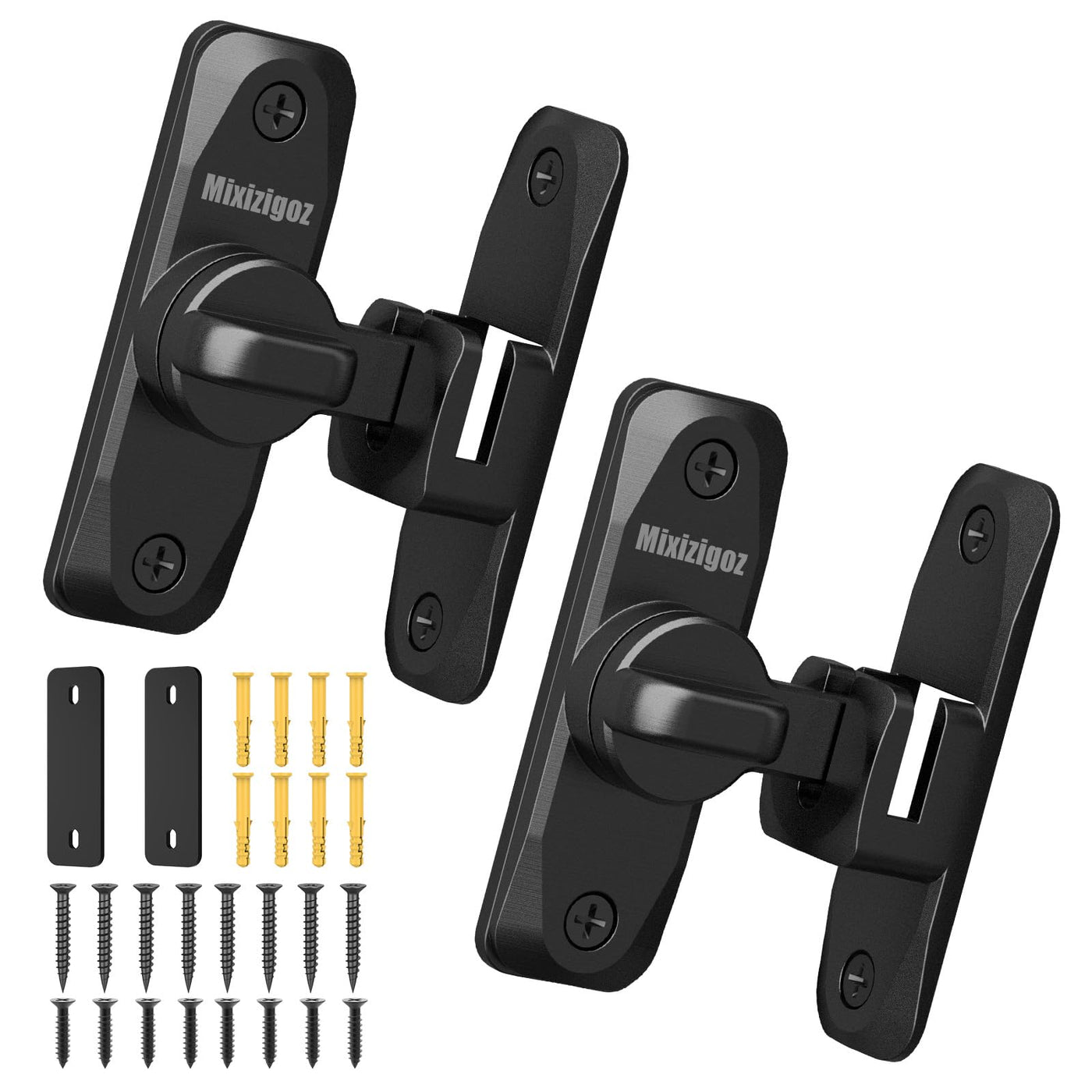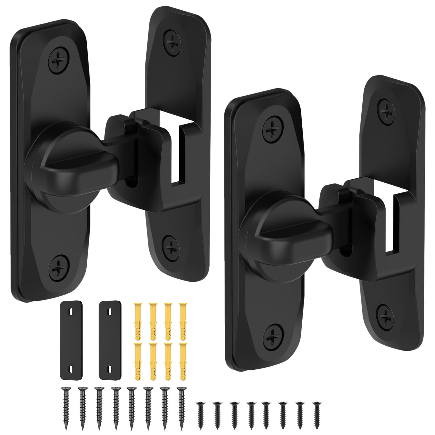 Mixizigoz Barn Door Lock, 90/180 Degree Flip Door Lock, Protect Privacy Sliding Door Lock Latch For Door, Garden, Bathroom, Garage, Window, Outdoor, Garage, Barn, Cabinet (Black-2 Pcs)