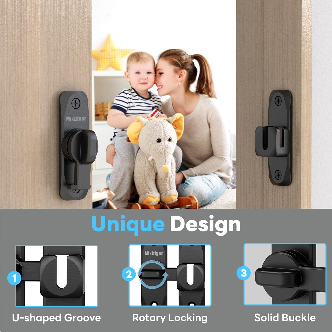 Q: How secure is the Mixizigoz Barn Door Lock?A: The Mixizigoz Barn Door Lock provides an additional layer of security by preventing unauthorized access and keeping toddlers and pets safe from opening doors or cabinets. Its durable construction enhances overall security.
