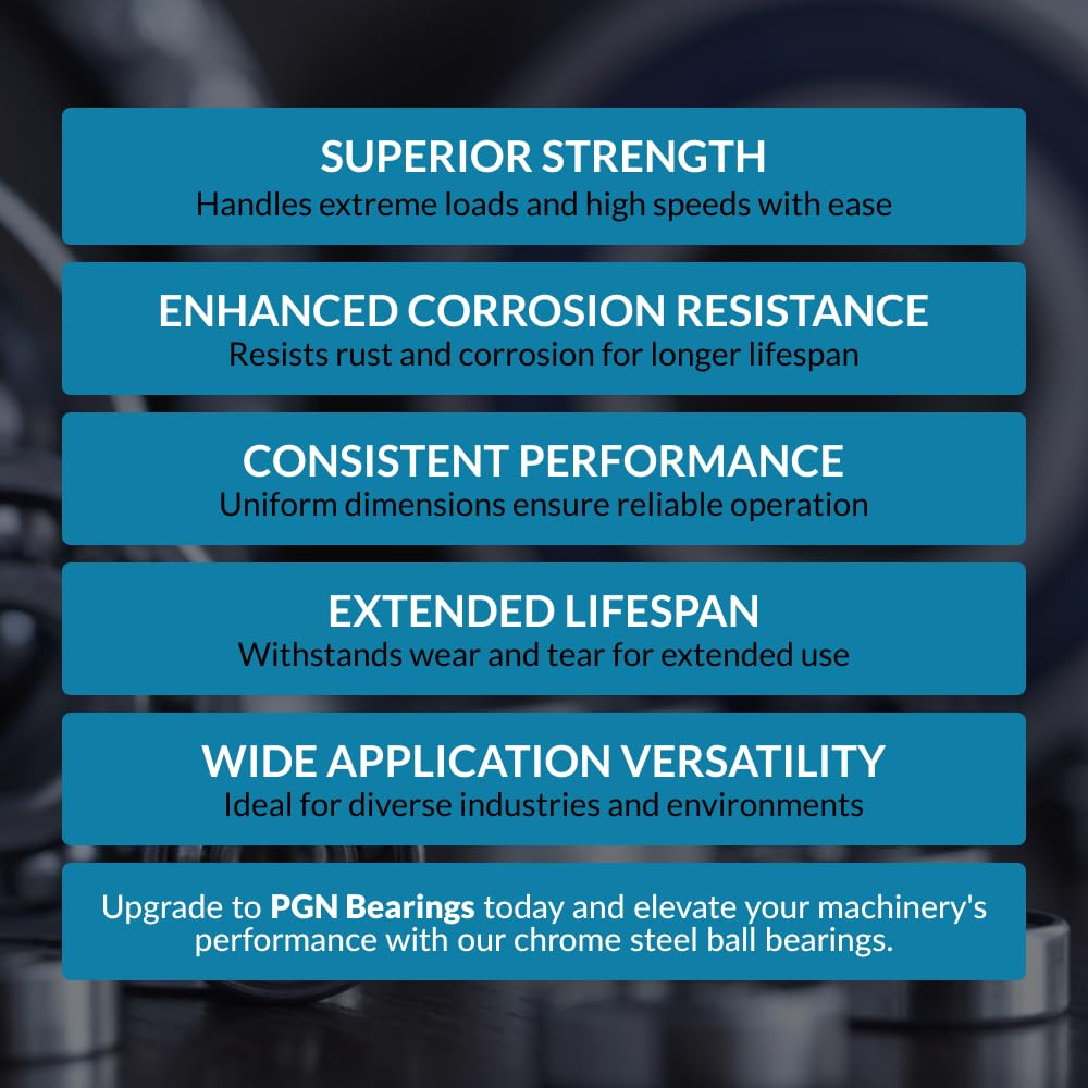Q: What makes the PGN 6201-2RS bearing an ideal choice for high RPM support?A: The PGN 6201-2RS bearing is specifically engineered to withstand high RPMs, minimizing wear and tear and preventing early failure. Its high-quality chrome steel material ensures durability under extreme conditions, making it a reliable choice for high-speed applications.