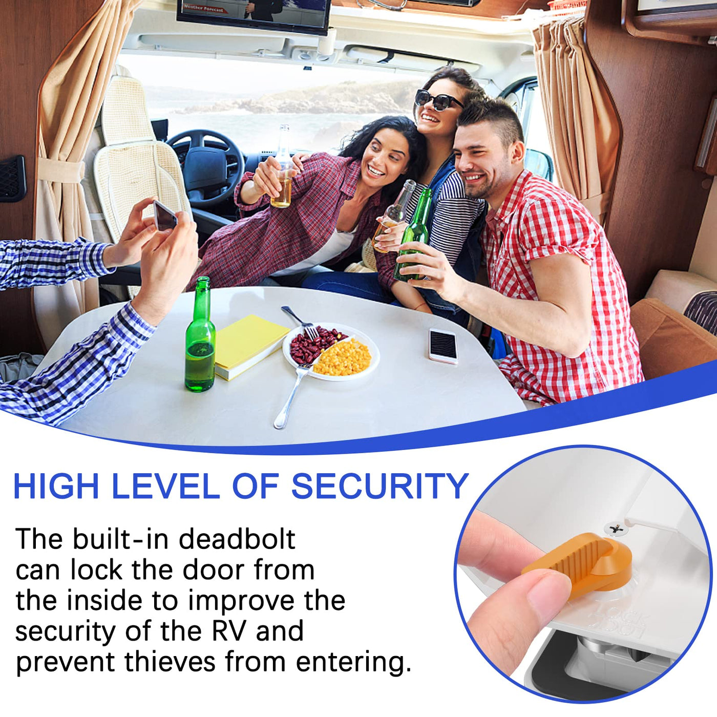 Q: How secure are these RV door locks against theft?A: These RV door locks feature a unique key design for each lock, enhancing security and making it difficult for unauthorized individuals to access your RV. Additionally, the built-in deadbolt offers further protection, allowing you to travel worry-free.