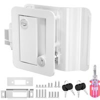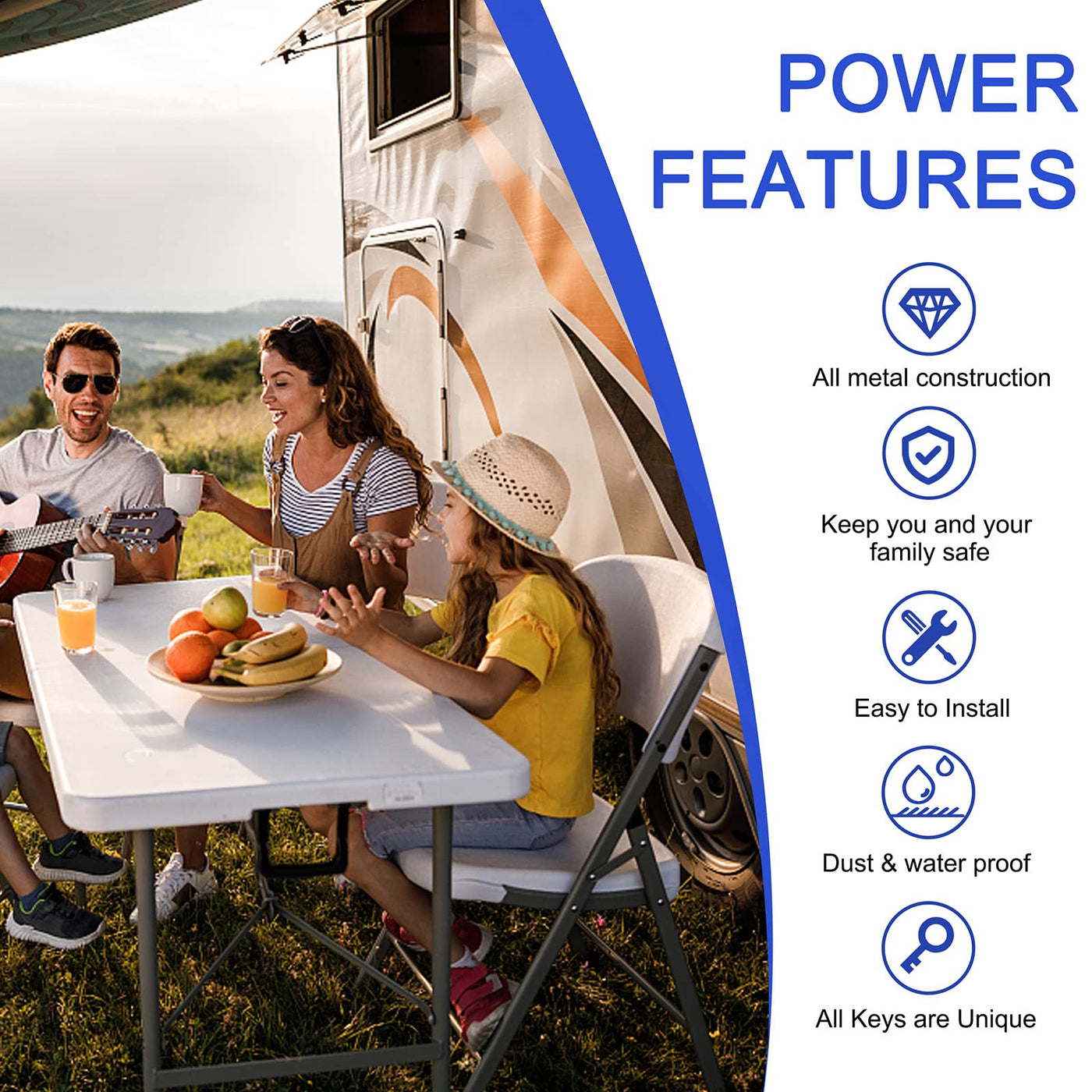 ?FITS MOST RV DOOR LOCK?Fits most RV doors (hole cutout is 2.67'' x 3.6'' and door thickness from 1.25 to 1.5). This RV door lock fit doors with hinges on the right side. Not fit CLASS A or CLASS C RVs. Please check your RV door's size before buying. | ?ANTI-THEFT & DURABLE?Each lock is the unique and with the unique keys. You can enjoy your trip to the fullest without worrying about the belongings in the RV. RV door locks with built-in deadbolt better protecting your security, travel worry free. | ?UPGRADED HIGH QUALITY?RISTOW RV door locks select high-quality zinc alloy materials, which are constructed by a variety of casting processes and have high hardness. The IP67 waterproof technology allows RISTOW RV locks to work well in a variety of environments. It is more durable than Aluminum alloy or plastic, corrosion-resisting, oxidation treatment, wear resistance. The surface is smooth, the hand feels good. | ?EASY TO INSTALL?Each kit arrives ready to install and includes 1x RV door handle, 4x mechanical keys, 10x different length screws, 1x screwdriver, mounting hardware, install guide. Install it within 10-minutes! With this lock, you can replace a broken lock yourself, thus avoiding expensive repairs. | ?WORRY FREE? RISTOW provide lifetime service for our product quality problem, if you have any questions, please feel free to contact us, we will solve the problem.