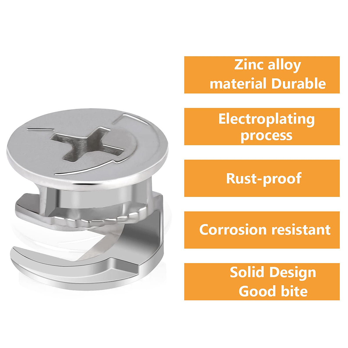 Q: What material are these furniture cam lock fasteners made from?A: These fasteners are made from high-quality zinc alloy, ensuring durability and resistance to rust and corrosion.