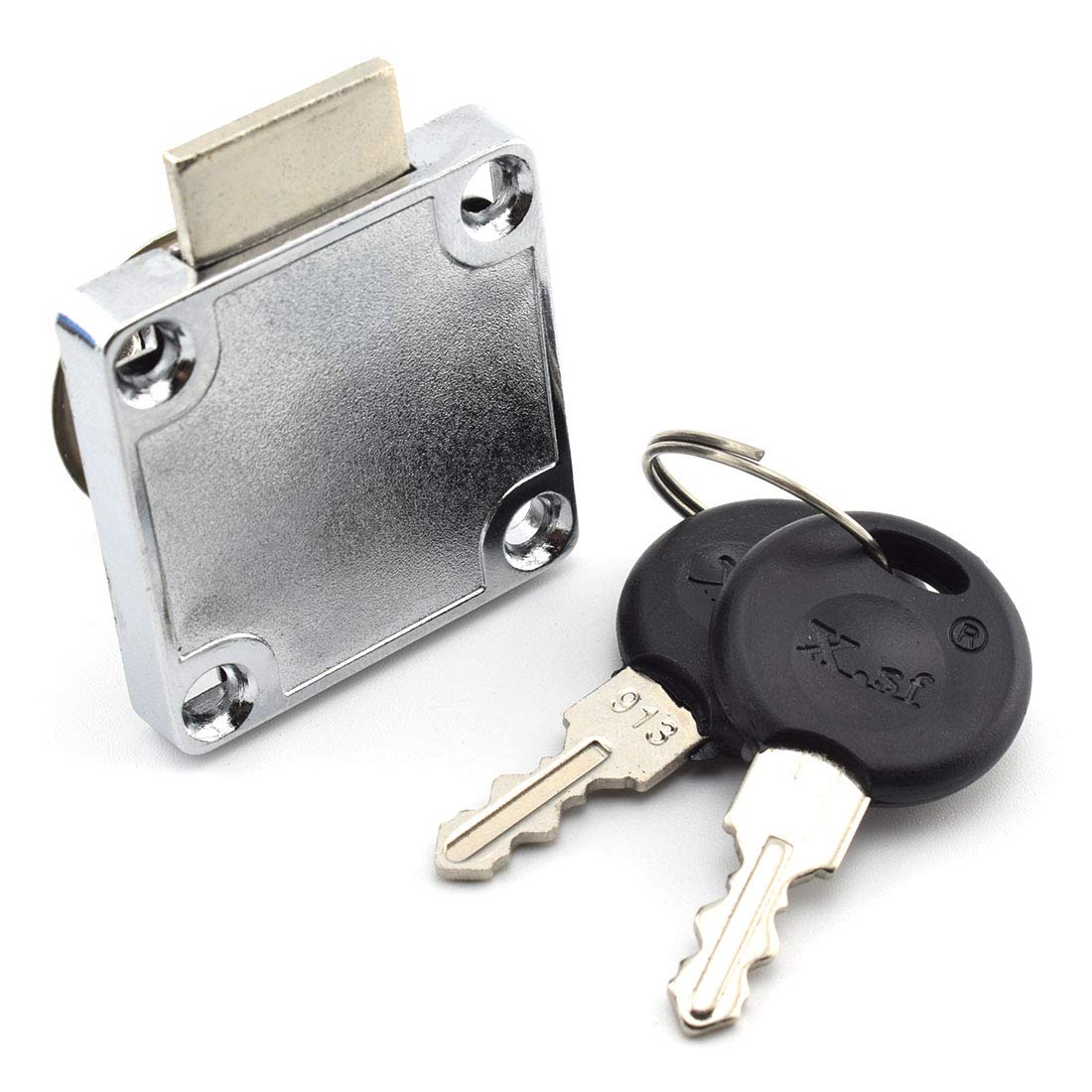 Q: What materials are used in the construction of this drawer lock?A: The drawer lock is made from high-quality zinc alloy with a chrome-plated surface, ensuring durability and rust resistance.