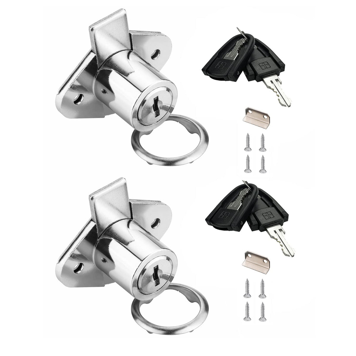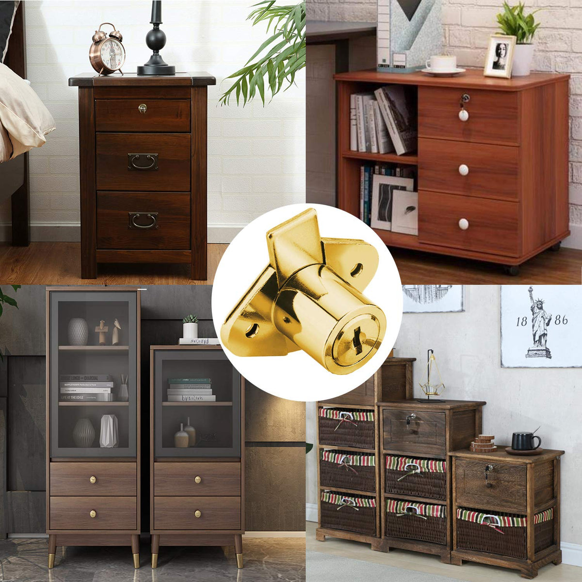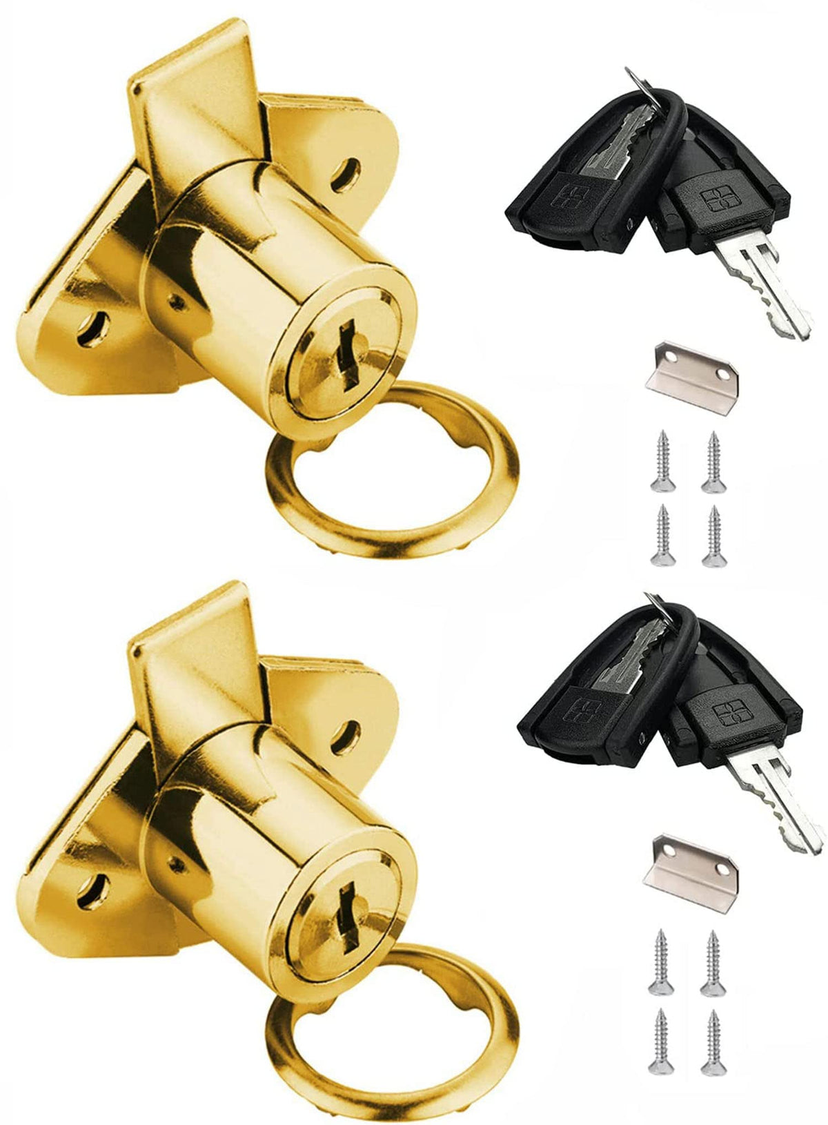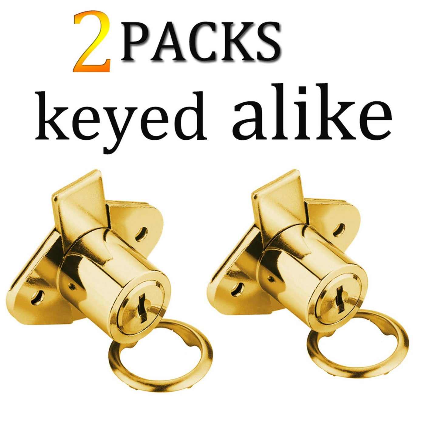 Xiehe 801 Office Furniture Desk Drawer Lock Cabinet Door Locker With 4 Keys 7/8 In. Outside Diameter (2 Packs, Gold, Keyed Alike2)