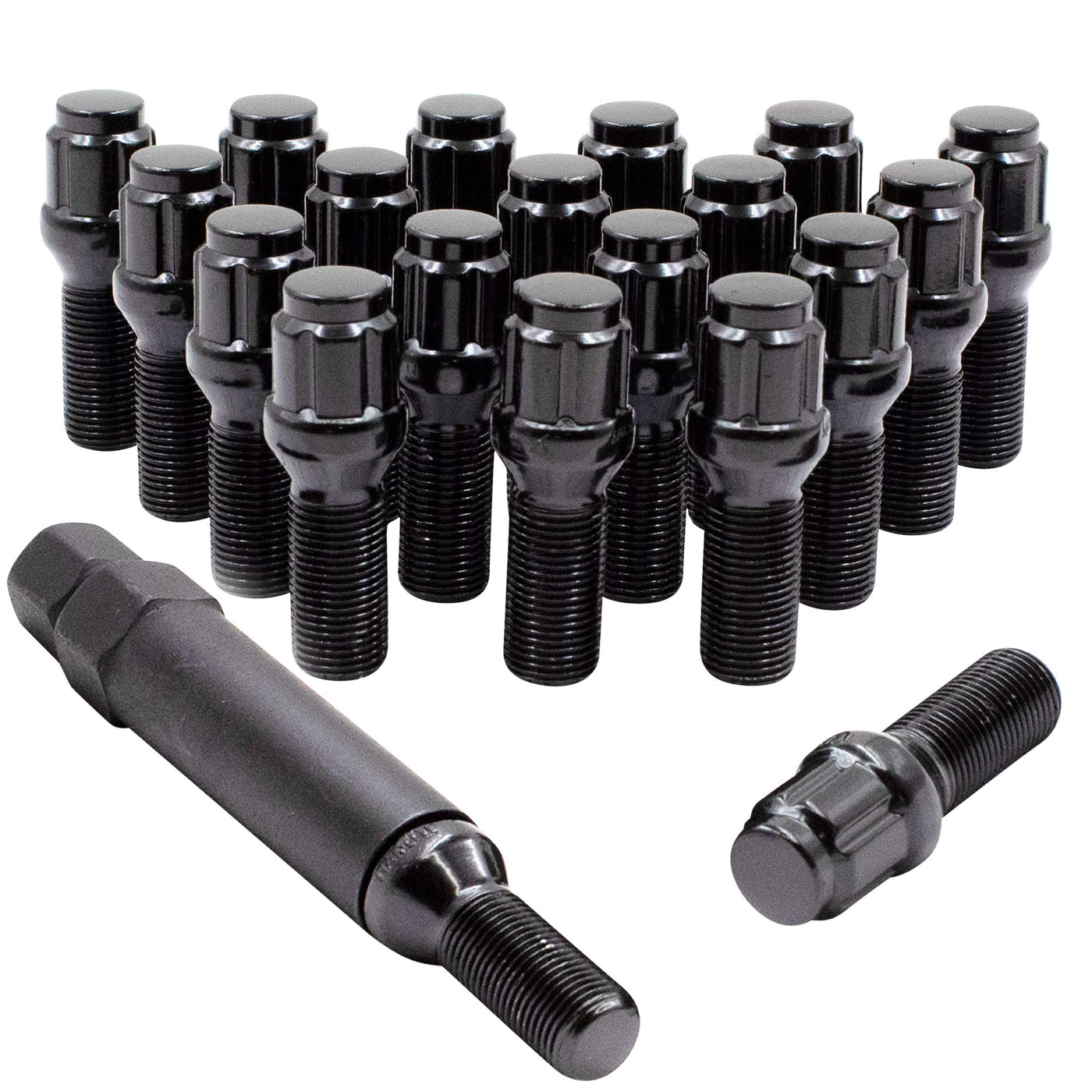Wheel Accessories Parts Set Of 20 Black 12X1.5 Lug Bolts Locking Spline Conical Seat With 24 Mm Shank Length Small Diameter Lug Bolt With Dual Hex Key For Aftermarket Wheels