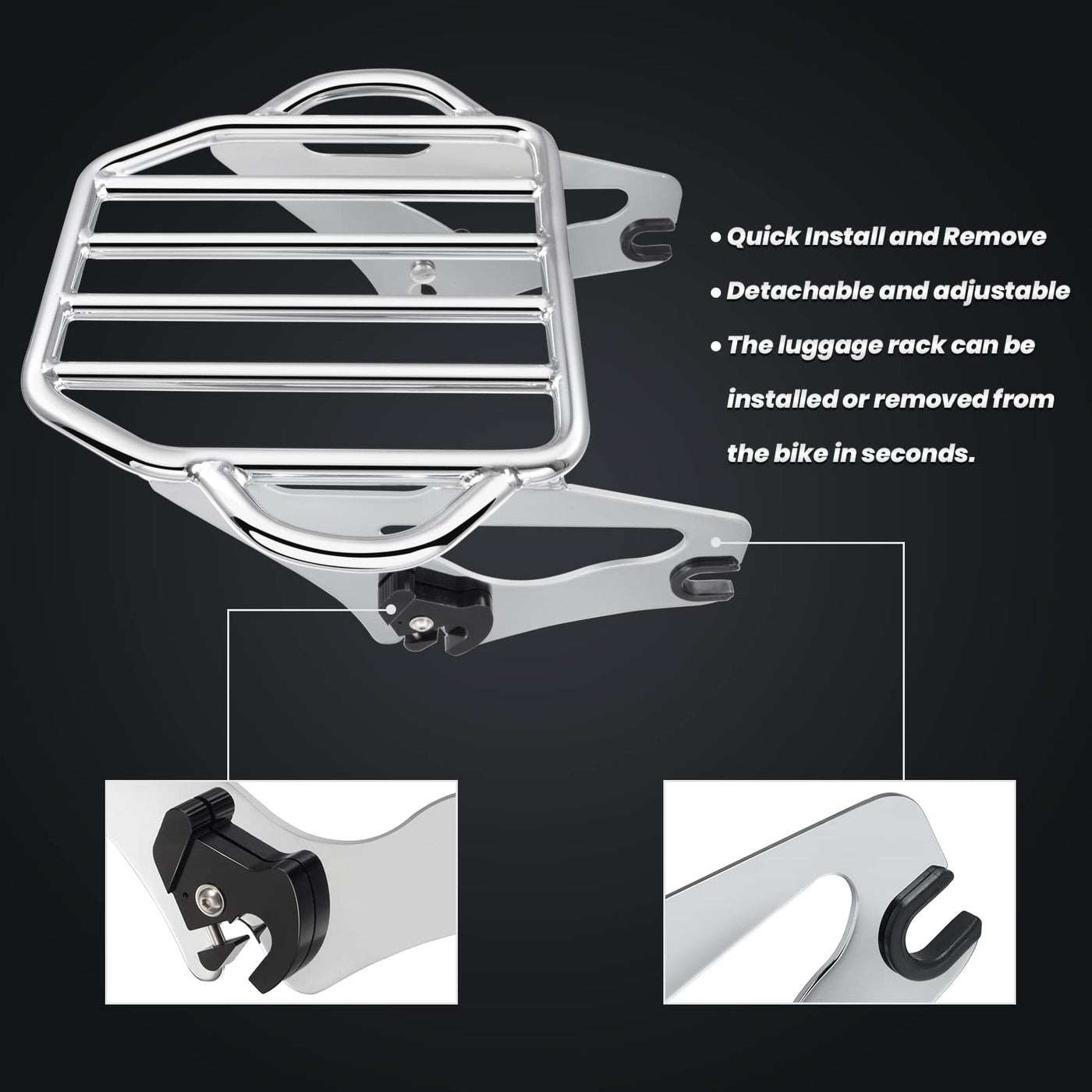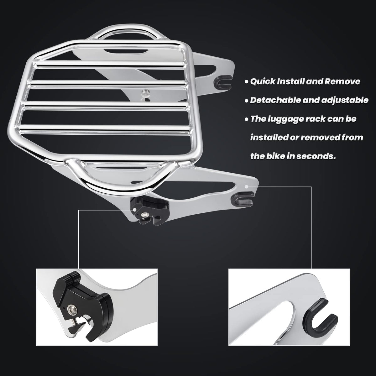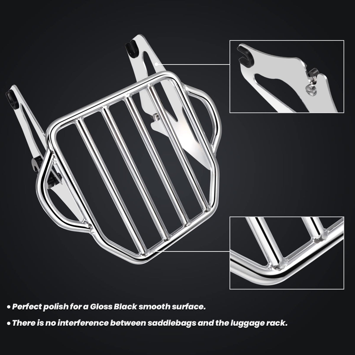 Benlari Chrome Detachable Luggage Rack 2-Up Mounting Rack Compatible For Harley Davidson Touring Road King Street Electra Glide