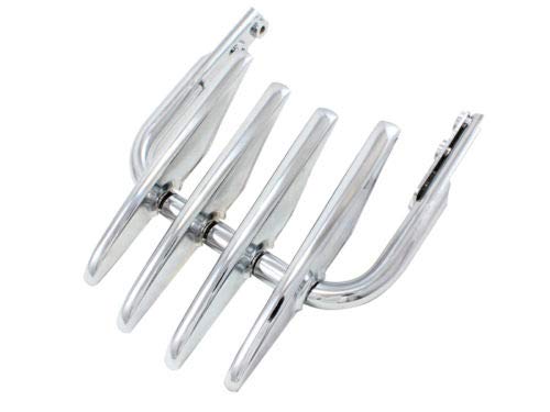 Q: How durable is the luggage rack and what material is it made from?A: The luggage rack is made from tough alloy steel, ensuring solid construction and durability. Its chrome finish also promises to prevent scratches, making it long-lasting and reliable.