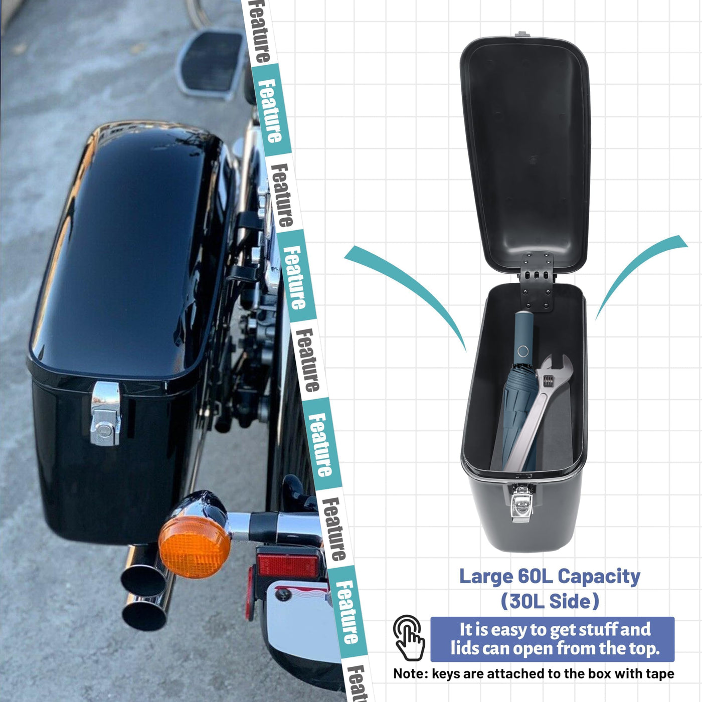 ECOTRIC Large 60L Motorcycle Hard Saddle Bags W/brackets Compatible With Harley Davidson Dyna Softail Sportster Honda Suzuki Kaw