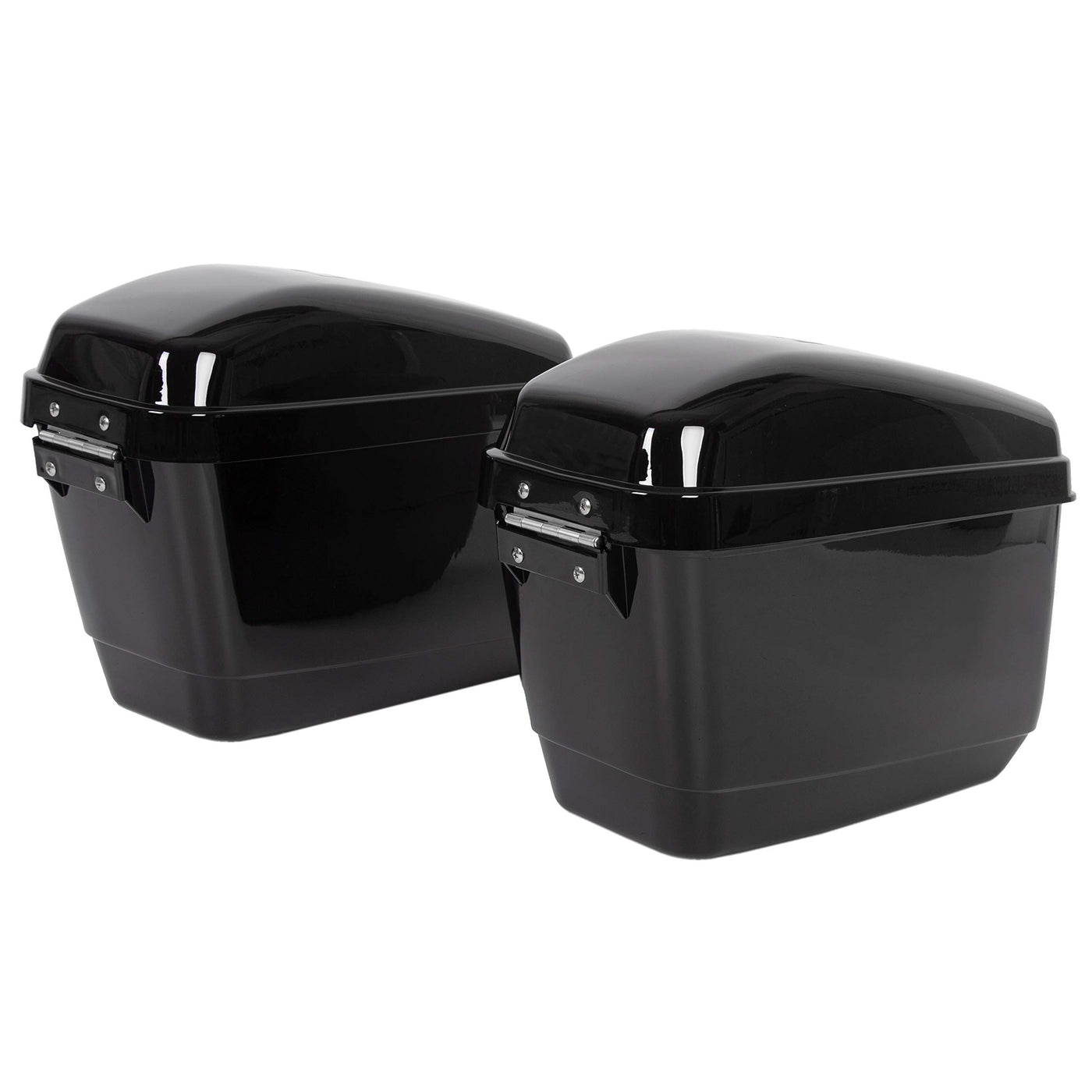 Fitment - Hard Motorcycle Saddle Bags Are Compatible With Most Bikes And Cruisers (Honda Yamaha Suzuki Kawasaki) With The Proper Mounting Hardware. Please Check Your Motorcycle Brackets To See If It Fits Your Motorcycle. Note- These Saddle Bags Are Suitable For Universal Motorcycle Models. Some Turn Signal Relocation And Or Minor Modifications May Be Required Please Take Measurements To Confirm Fitment. Please Choose These Items Carefully. Product Parameters - Motorcycle Saddlebag Exterior Dimensions: 16.5'' L X 12.5'' H X 6.75'' W. Gloss Black Finish, Adds A Unique Style To Your Motorcycle. Sold As A Pair. The High-Quality Abs Material Ensures The Durability Of The Saddle Bag And Keeps The Cargo Dry From Being Wet By Rain. Package Include As Follows - You Will Receive 1 Pair Of Black Saddle Bags. Bag Side Opening Door, 2 Keys Attached To The Box. All Required Mounting Hardware Is Included (As Shown). Installation Tip - Bags Are Not Pre-Drilled For Flexible Installation. For The General Installation Process, Please Refer To The Product Description.