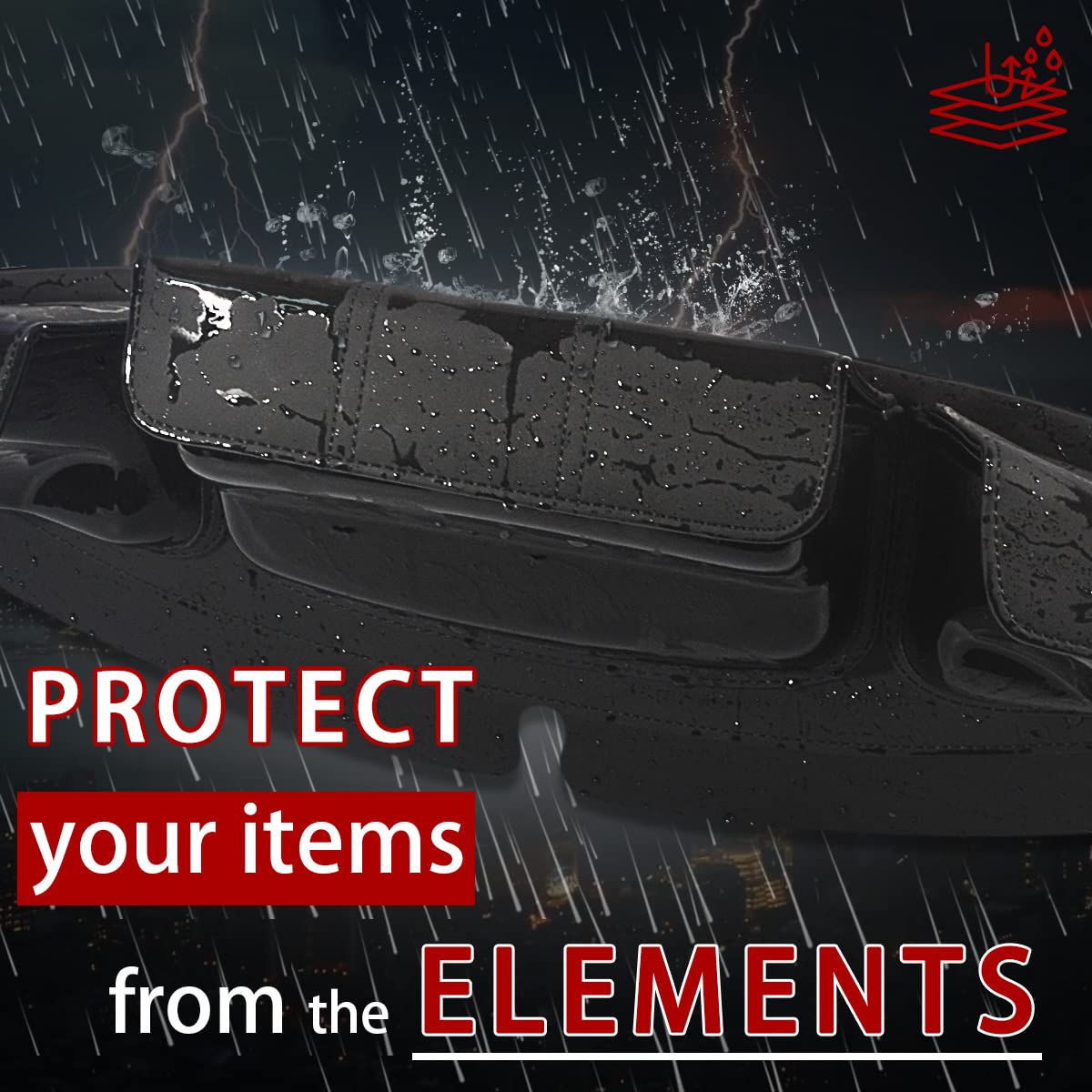 Q: How does the FOVPLUE Windshield Bag protect my items?A: This windshield bag is constructed from premium formed vinyl, which is UV-tested and designed to protect your items from elements such as rain, dust, and wind. It helps keep your belongings safe while you ride, especially during long trips.