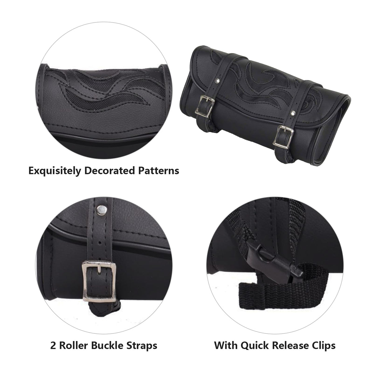 GARGOYLE BELLS Motorcycle Tool Bags with Flames Handlebar Bag Universal Motorcycle Fork Bag Saddlebags Sissy Bar Storage Tool Ba