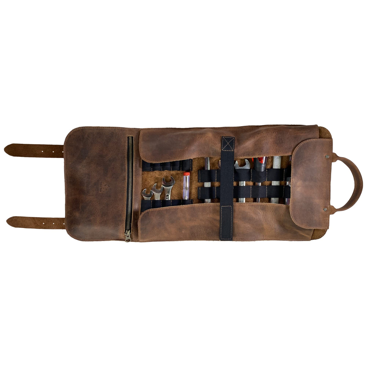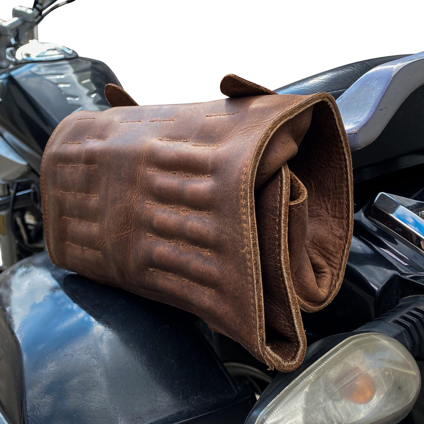 Hide & Ride, Motorcycle Tool Roll Bag, Motorbike Saddlebag, Wrench Organizer For Commuters, Storage Accessory Pouch, Full Grain