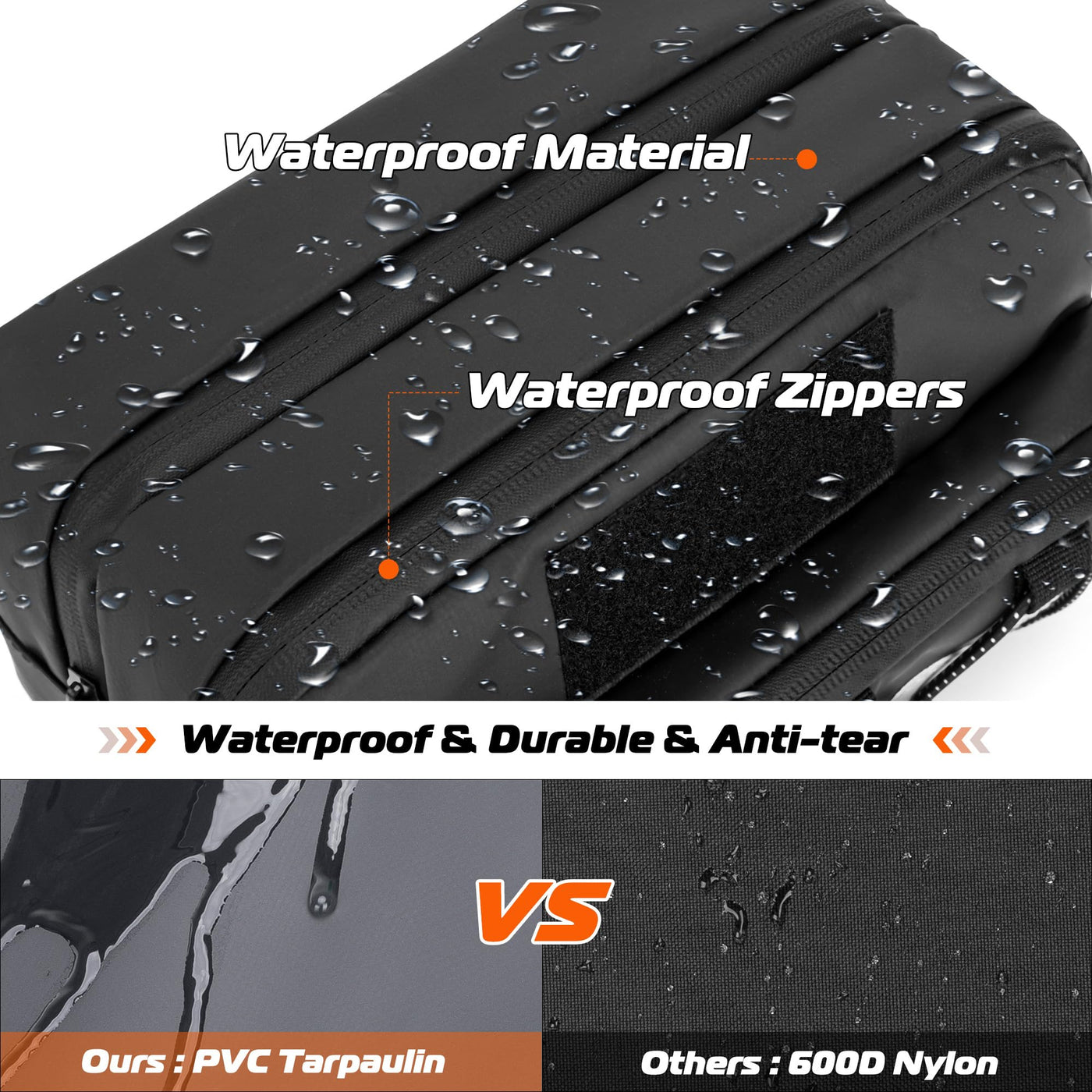 Q: Is the HODRANT handlebar bag waterproof?A: Yes, the bag is made with high-density PVC tarp and waterproof zippers, ensuring that your belongings are protected from water, snow, dust, and sand.