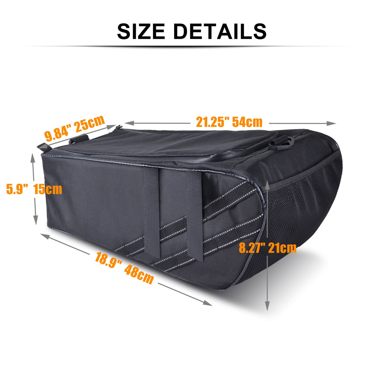 Q: Is the Hutexico Under Seat Bag safe for nighttime riding?A: Yes, the bag includes side reflective strips that enhance visibility during nighttime rides, ensuring greater safety for riders when traveling in low-light conditions.