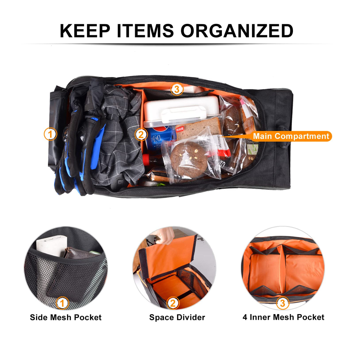 Q: How much storage capacity does the Hutexico Under Seat Bag offer?A: This moped seat bag features a generous 23L capacity, including an interior space divider and quick-access mesh pockets for efficient organization of your items.