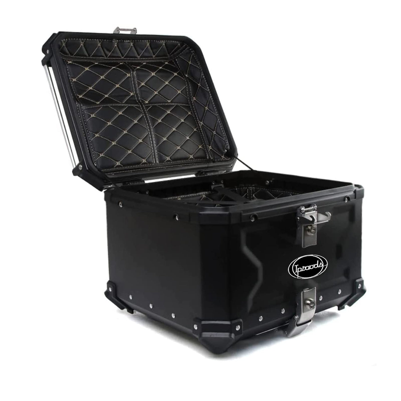 Q: What security features does the iproods motorcycle top case offer?A: The motorcycle top case includes a double keyhole locking system. This allows you to lock both the inside of the case and the mounting plate, providing added security against theft when you're on the go or parked at home.