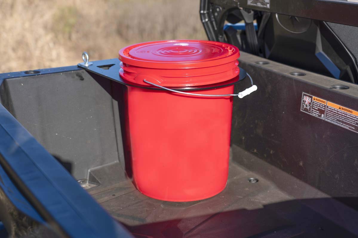 Give your UTV a handy upgrade with Rough Countrys 5 Gallon Bucket Holder! This convenient attachment installs in a snap and allows you to easily haul a 5 gallon bucket with no sliding, tipping, or tumbling over in the bed. This kit attaches with three 1-7/16in tie down points that seat the bucket holder to the bed firmly. Once installed, travel with peace of mind knowing your 5 gallon bucket wont budge throughout your journey