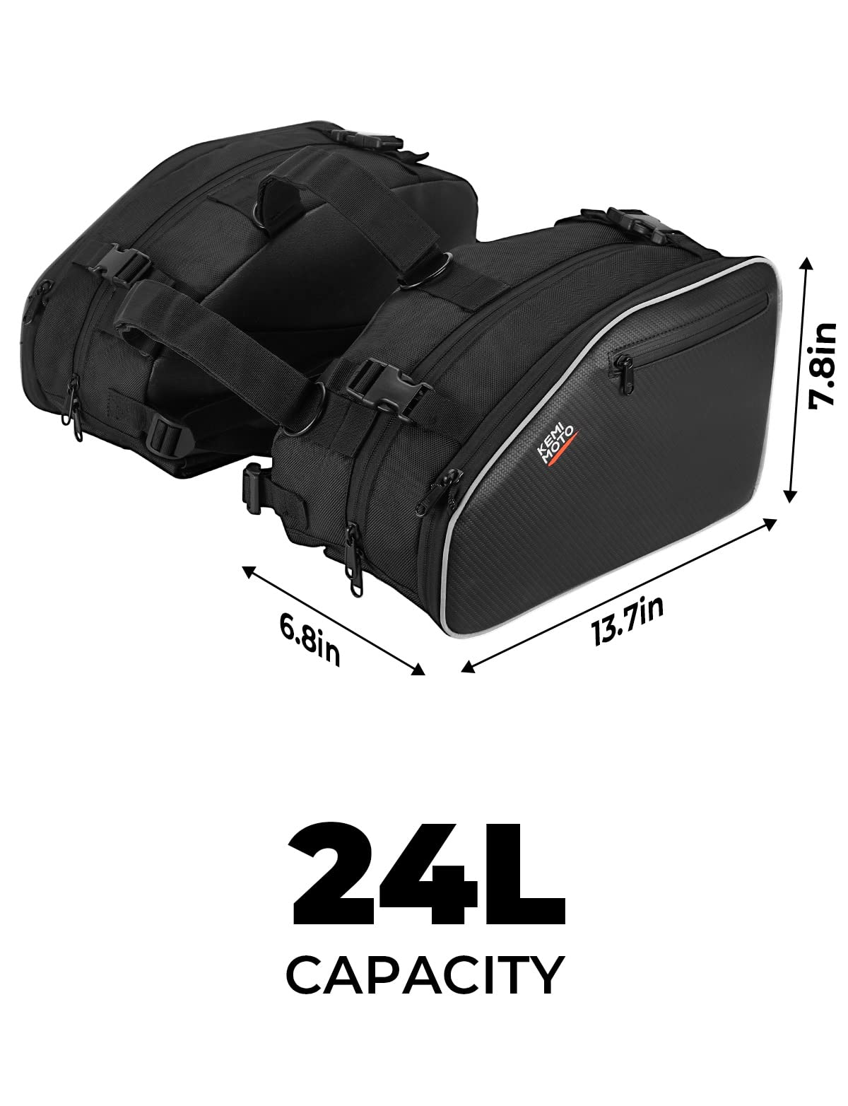 KEMIMOTO Motorcycle Saddlebags, 24L Large Capacity Storage Saddlebags with Rain Covers for Motorcycle Dirt Bike Dual Sport Motor
