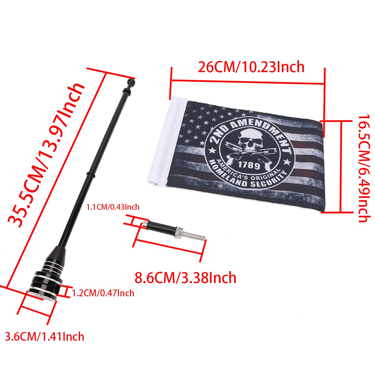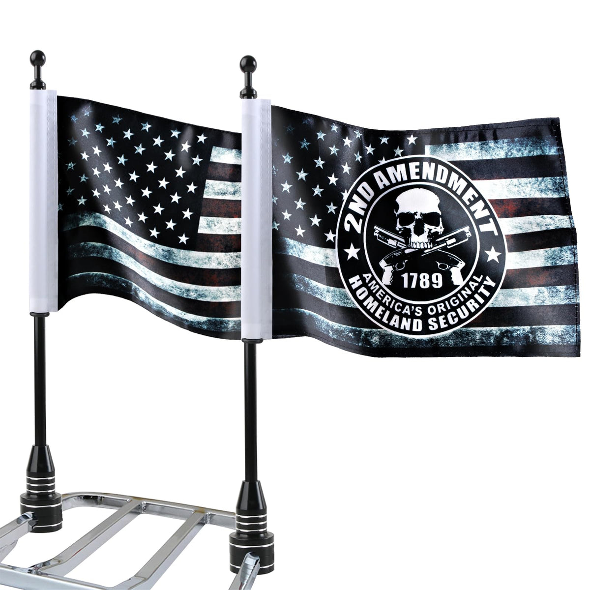 Motorcycle Flags 6 x 9 Antique US Flag 2ND Amendment Flag with Black Flagpole Mounts for 1/2 Motorcycle Luggage Rack for H