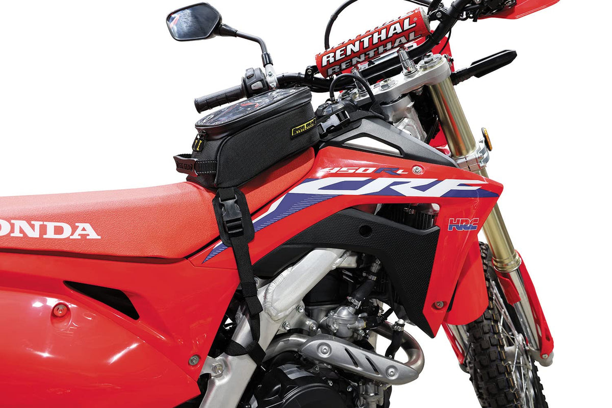 Industry Leading Ultramax Fabric That Offers Maximum Fade Resistance And Prevention Of Break Down From The Natural Elements. Quick Release Strap System For Easy Attachment And Refueling. Compact Size Perfect For Enduro, Dual-Sport And Adventure Motorcycles. Reflective Piping For Improved Night Visibility. Bag Holds Its Shape And Reverse Coil Lockable Zippers Help Keep Out Dust And Dirt. Protective Base Material Prevents Slipping Or Marking. 100% Waterproof Rain Cover Included. Clear Map Pocket Is Touch Screen Device Friendly. Main Compartment Measures: 10.25”L X 6.5”W X 4”H And Holds 4.4 Liters
