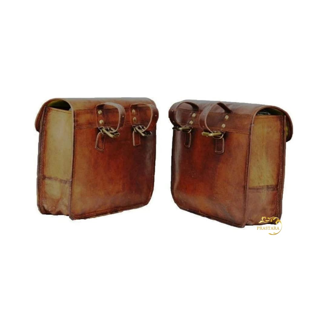 Prastara Motorcycle Large Saddle Tan Color Studed 2 Strap Real Leather Saddlebag Biker Bag