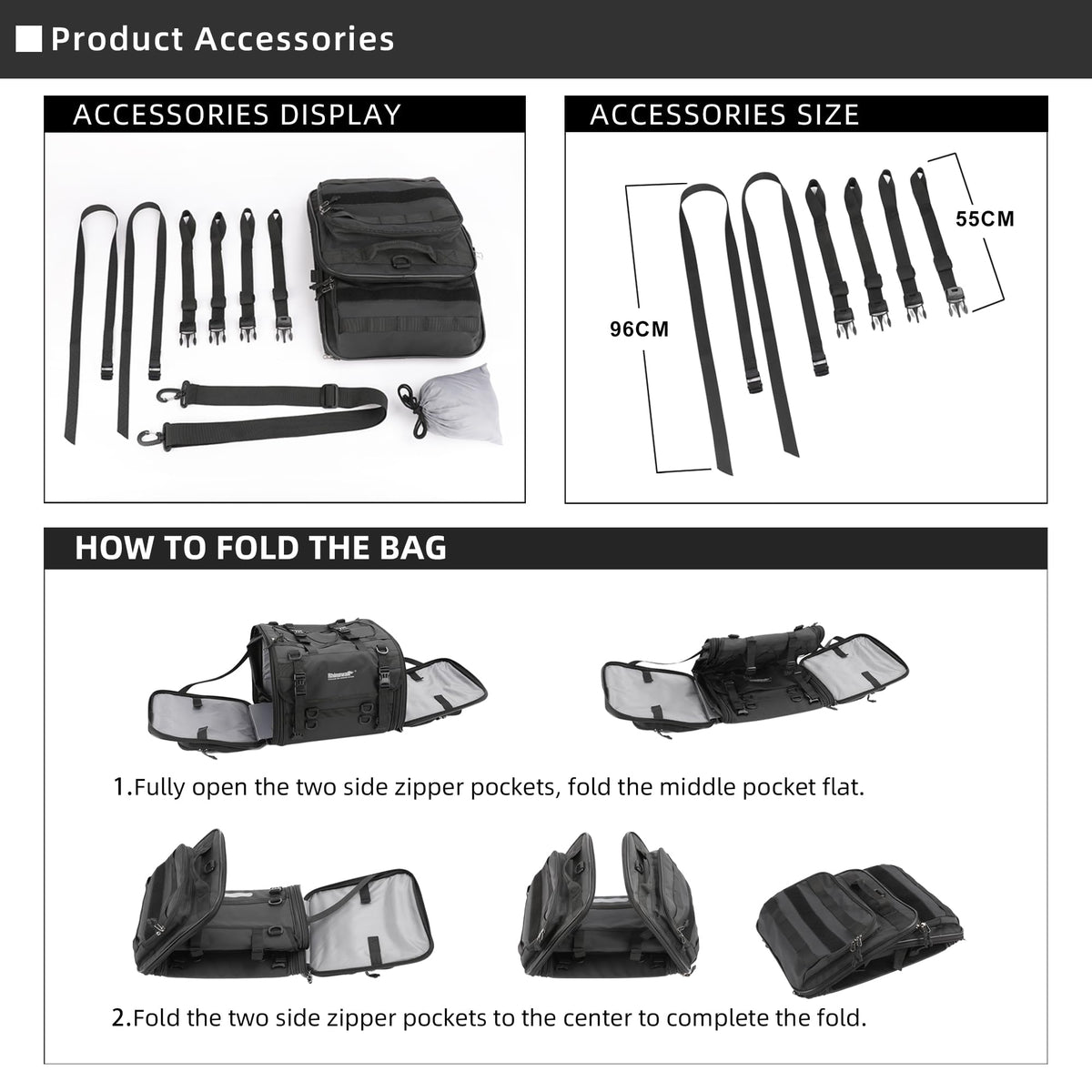 Rhinowalk Motorcycle Tail Bag Expandable Motorcycle Travel Luggage 80L Waterproof All Weather/Trunk/Rack Bag With Sissy Bar Stra