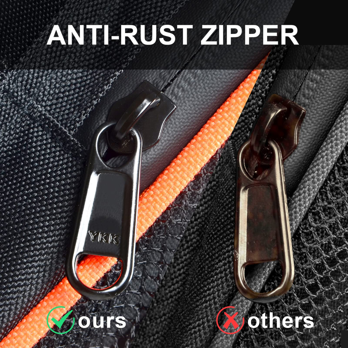 Q: What materials are used in the construction of the storage bag?A: The storage bag is made from high-quality 1680D Oxford Cloth, featuring stainless steel hooks, a waterproof reverse zipper, and nylon webbing, ensuring durability and resistance to water, scratches, and wear.