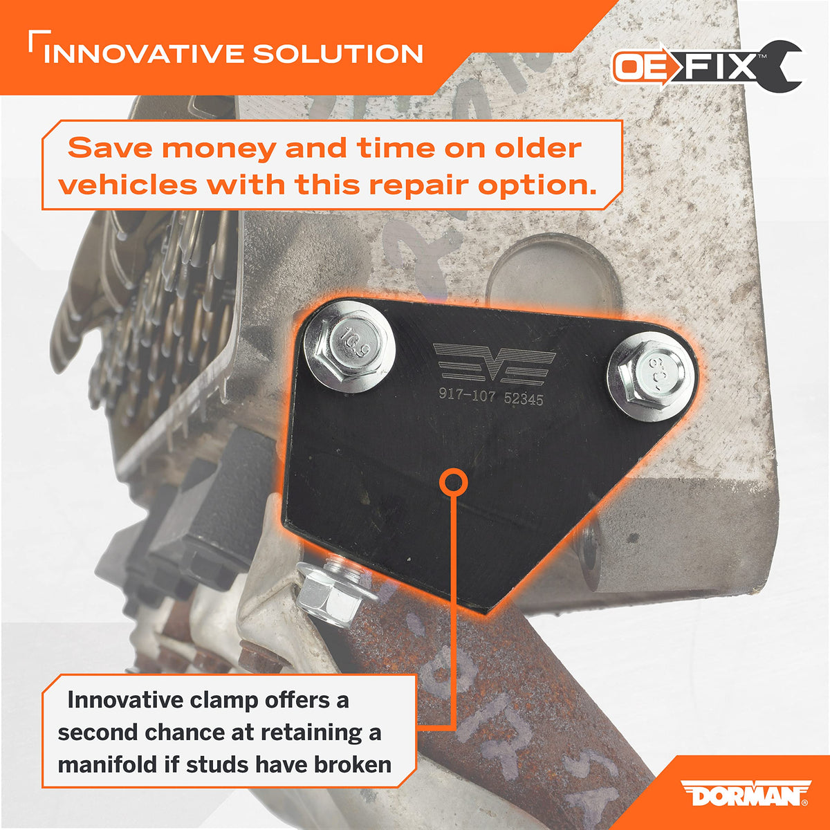 Q: What is included in the Dorman exhaust manifold clamp kit?A: The complete Dorman 917-107 kit includes the exhaust manifold clamp and necessary fasteners, providing everything needed for a thorough and secure repair.