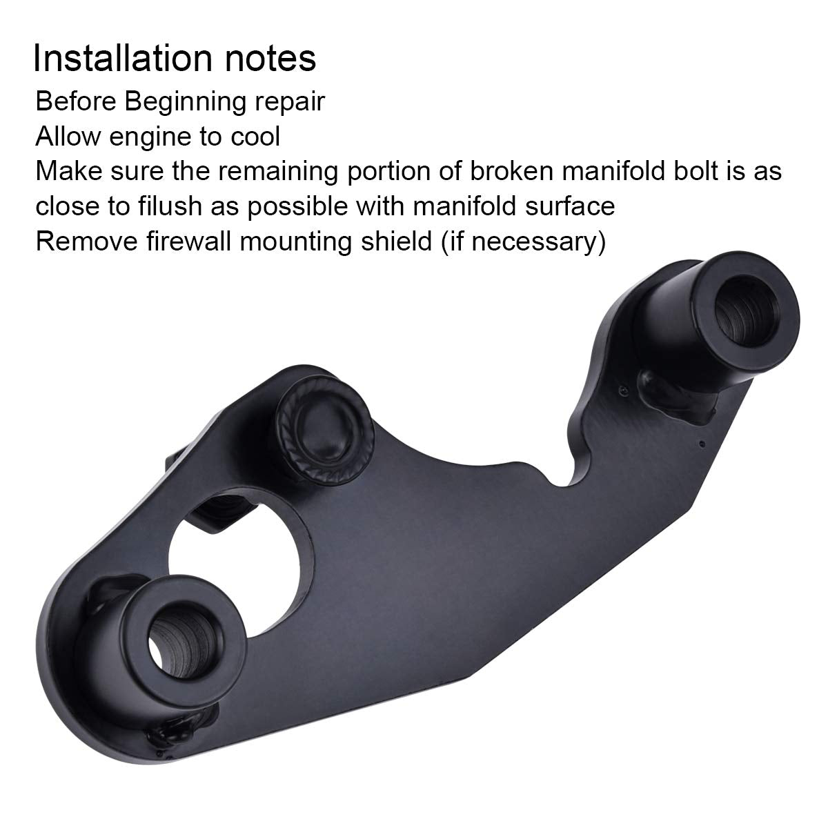 Q: How durable is the material used in this repair kit?A: The Exhaust Manifold Bolt Repair Kit is made from high-quality carbon steel, ensuring that the brackets are heavy-duty and designed to last. This material withstands the heat and expansion of the manifold, providing a reliable solution for exhaust leaks.