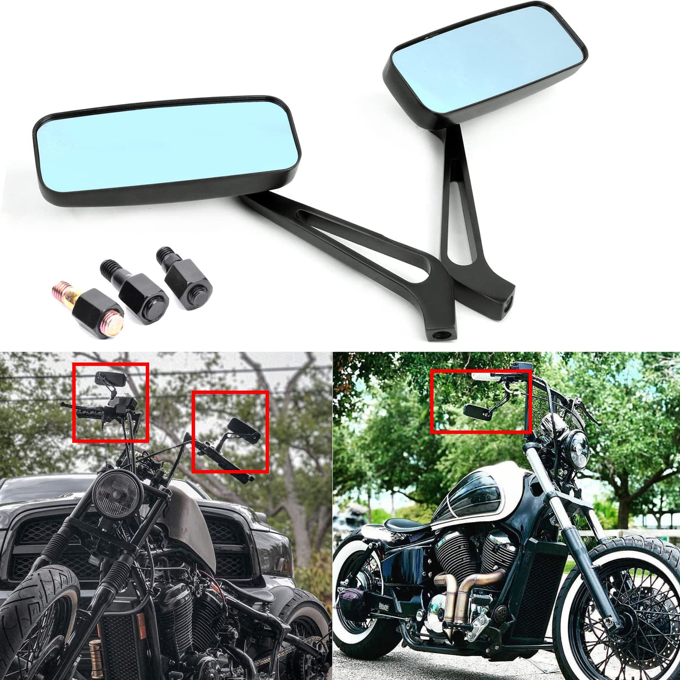 8Mm/10Mm Black Rectangle Motorcycle Rear View Side Mirrors Compatible With Kawasaki Suzuki Yamaha Cruiser Chopper