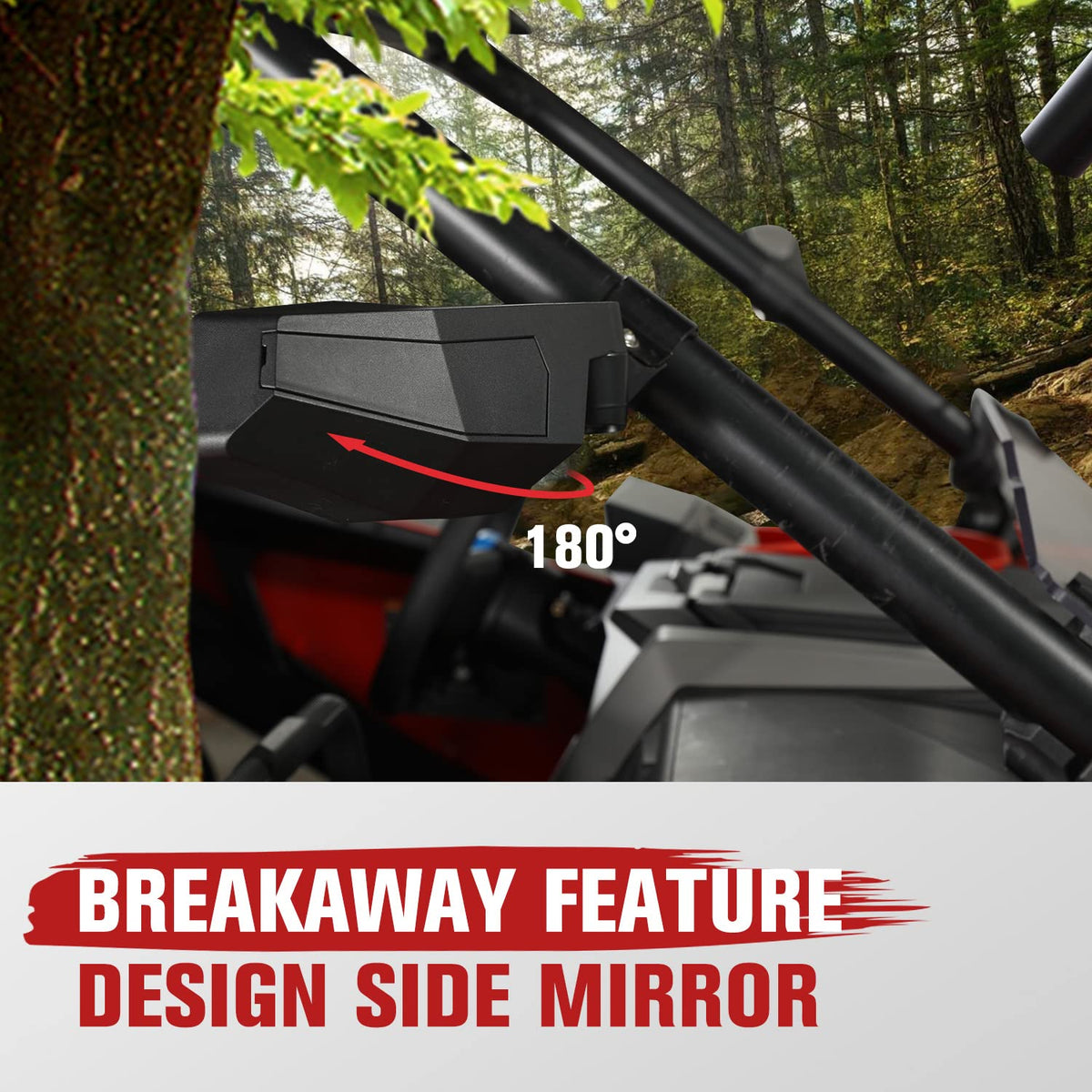Q: How do the break-away design features enhance the safety of these mirrors?A: The break-away design allows the mirrors to fold inward, reducing the risk of damage from obstacles on narrow trails. This flexibility enhances safety by preventing breakage during intense rides and maintaining visibility.